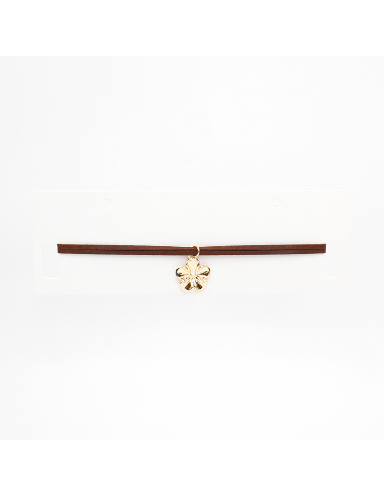Chocker de doble gamuza con dije de flor, de fundición dorada. Medida: 29cm de largo, ajustable con cadena de enganche de 10cm.