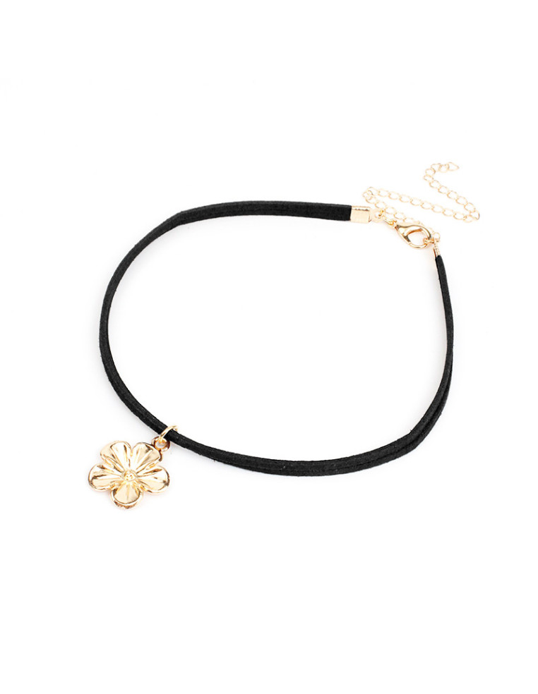 Chocker de doble gamuza con dije de flor, de fundición dorada. Medida: 29cm de largo, ajustable con cadena de enganche de 10cm.