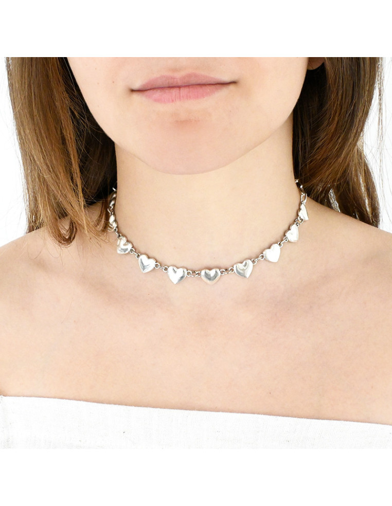 Choker de cadenas, con dijes de corazón doble agarre.