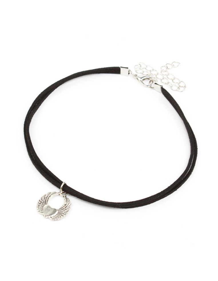 Choker de gamuza con dije de fundición con forma de corazón con alas.