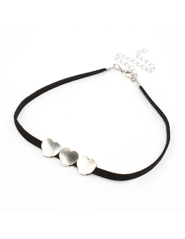 Chocker de Gamuza con dijes de fundición con forma de corazón.Medida: 30cm de largo, ajustable con cadena de enganche de 10cm.
