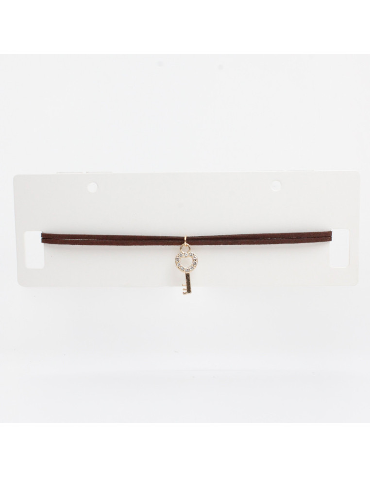 Chocker de doble gamuzas con dije de strass con forma de llave.