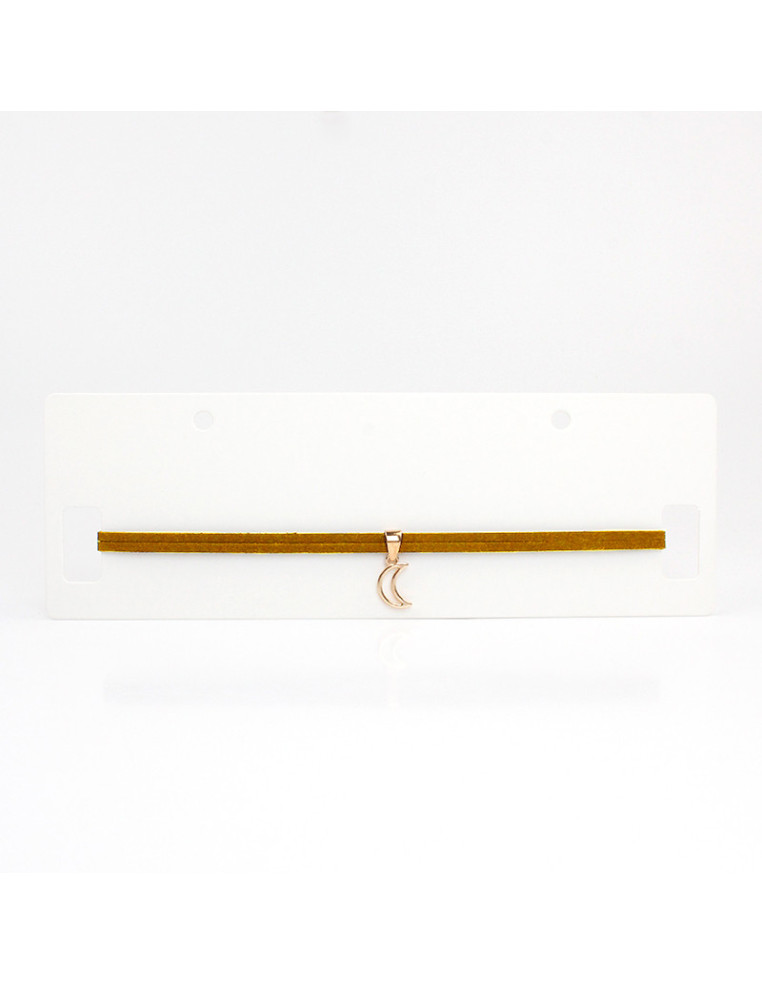 Chocker de doble gamuza, con dije de fundición con forma de luna. Medida: 29cm de largo, ajustable con cadena de enganche de 10cm.