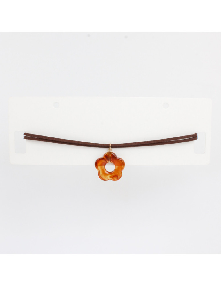 Chocker de doble gamuza intervenido con dije exclusivo de acrílico en forma de flor.