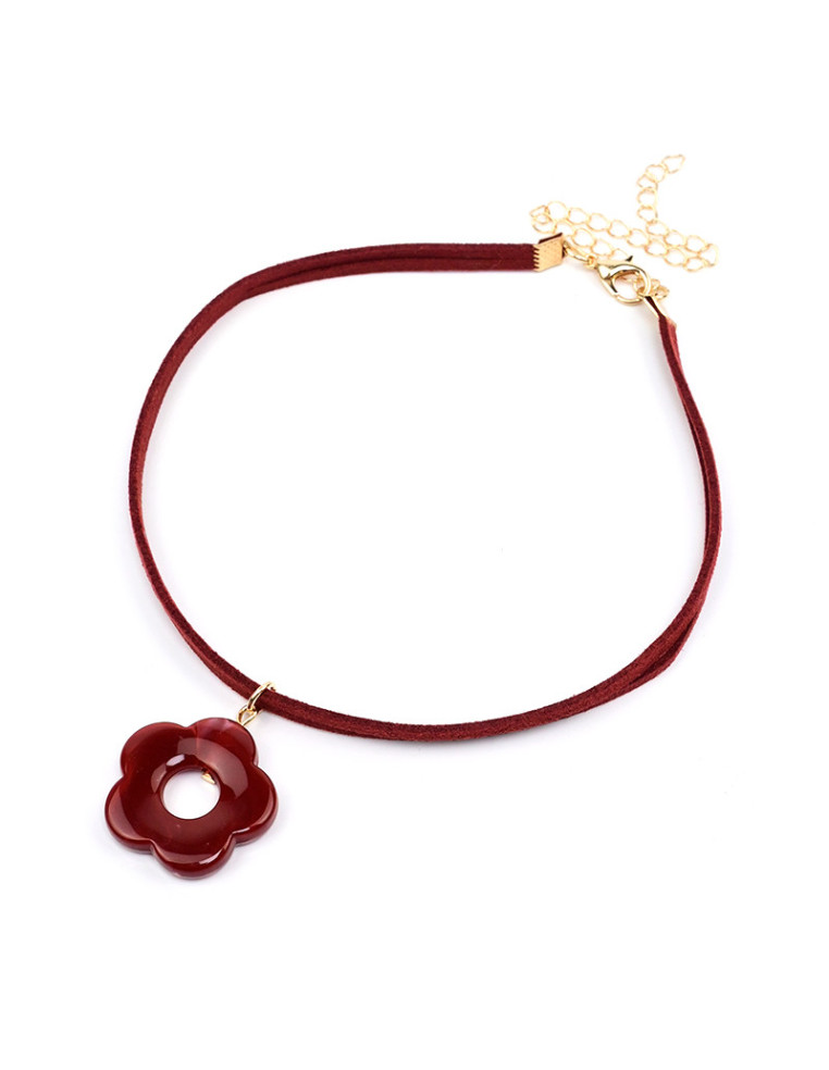 Chocker de doble gamuza intervenido con dije exclusivo de acrílico en forma de flor.