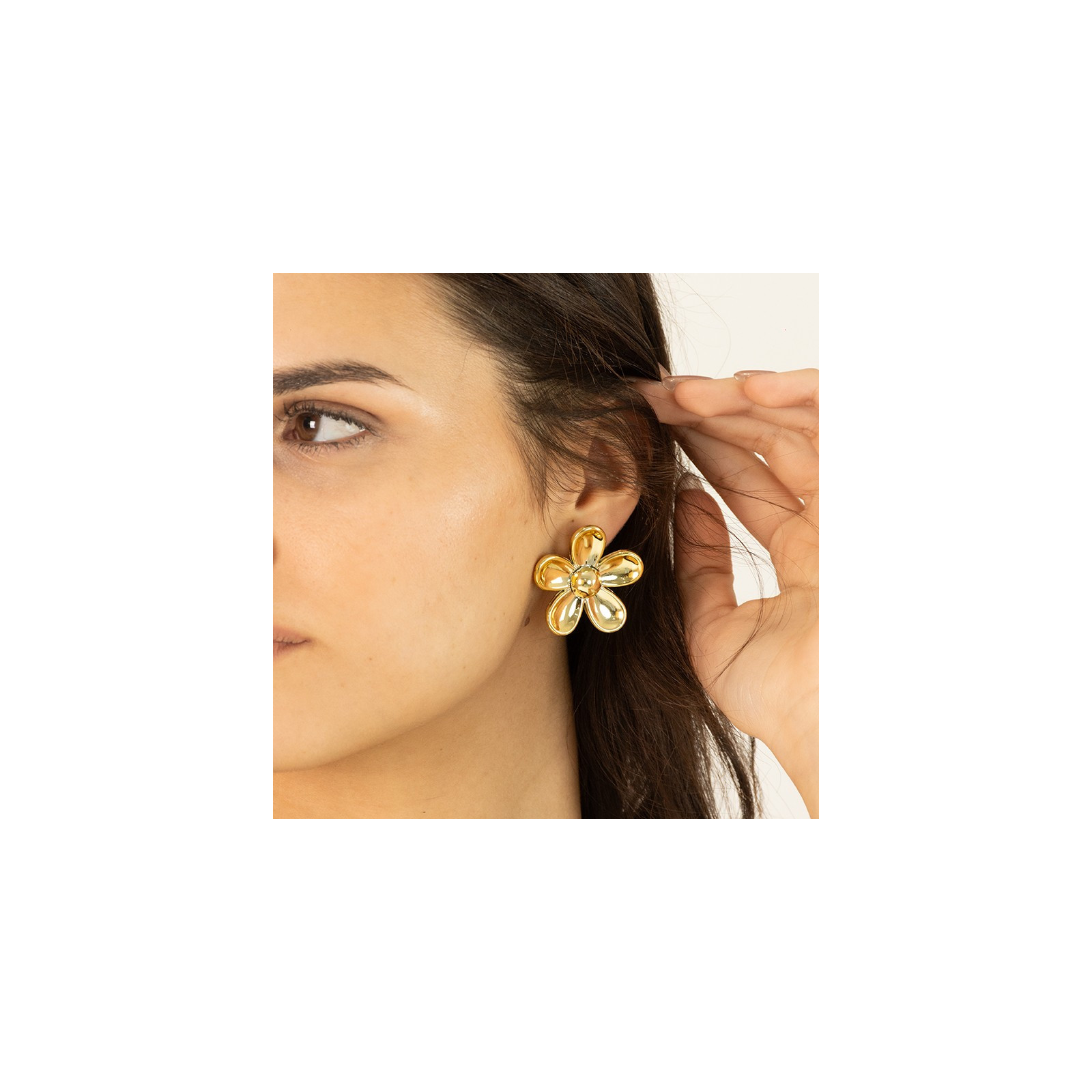 Aro Trendy de ccb en forma de flor dorado.