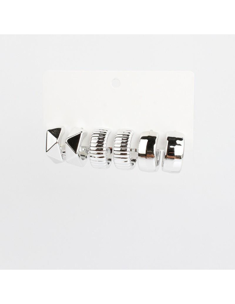 Set de tres pares de aros chunky de formas orgánicas níquel.