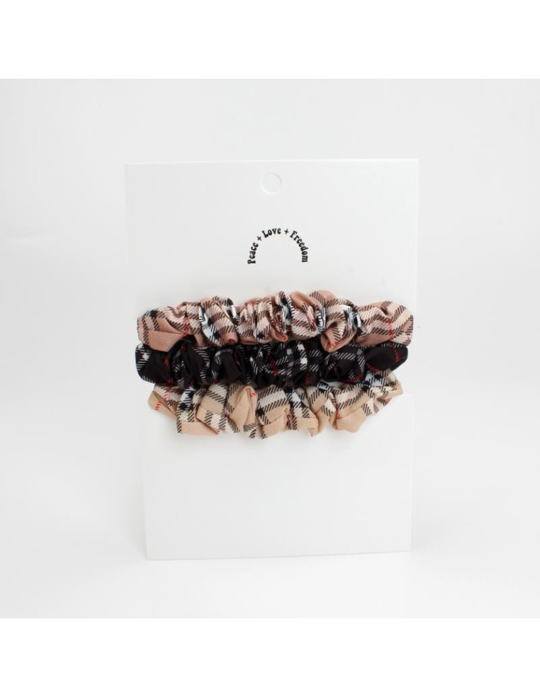Set de tres mini scrunchies de tela cuadrille.