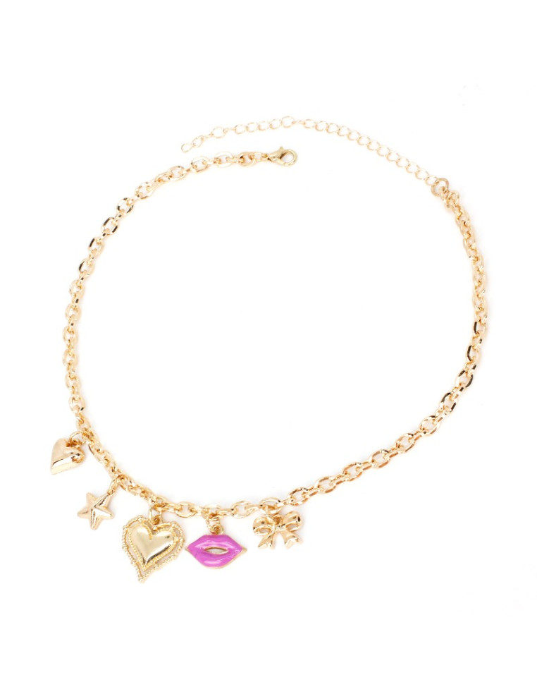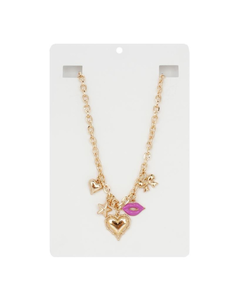 Collar de cadena diferenciada con múltiples dijes exclusivos y pintados a mano dorados.