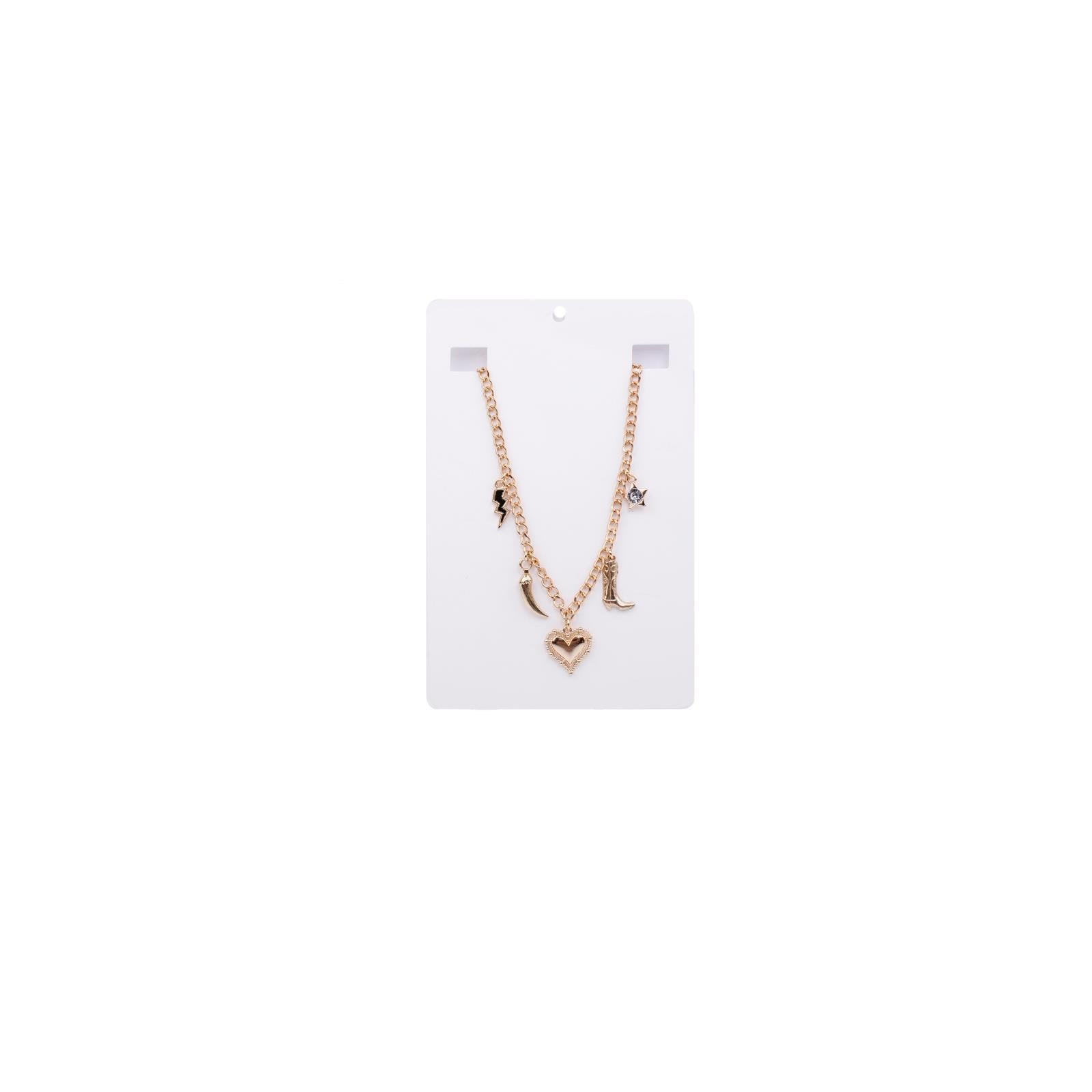 Collar de cadena diferenciada con múltiples dijes exclusivos y pintados a mano dorados.