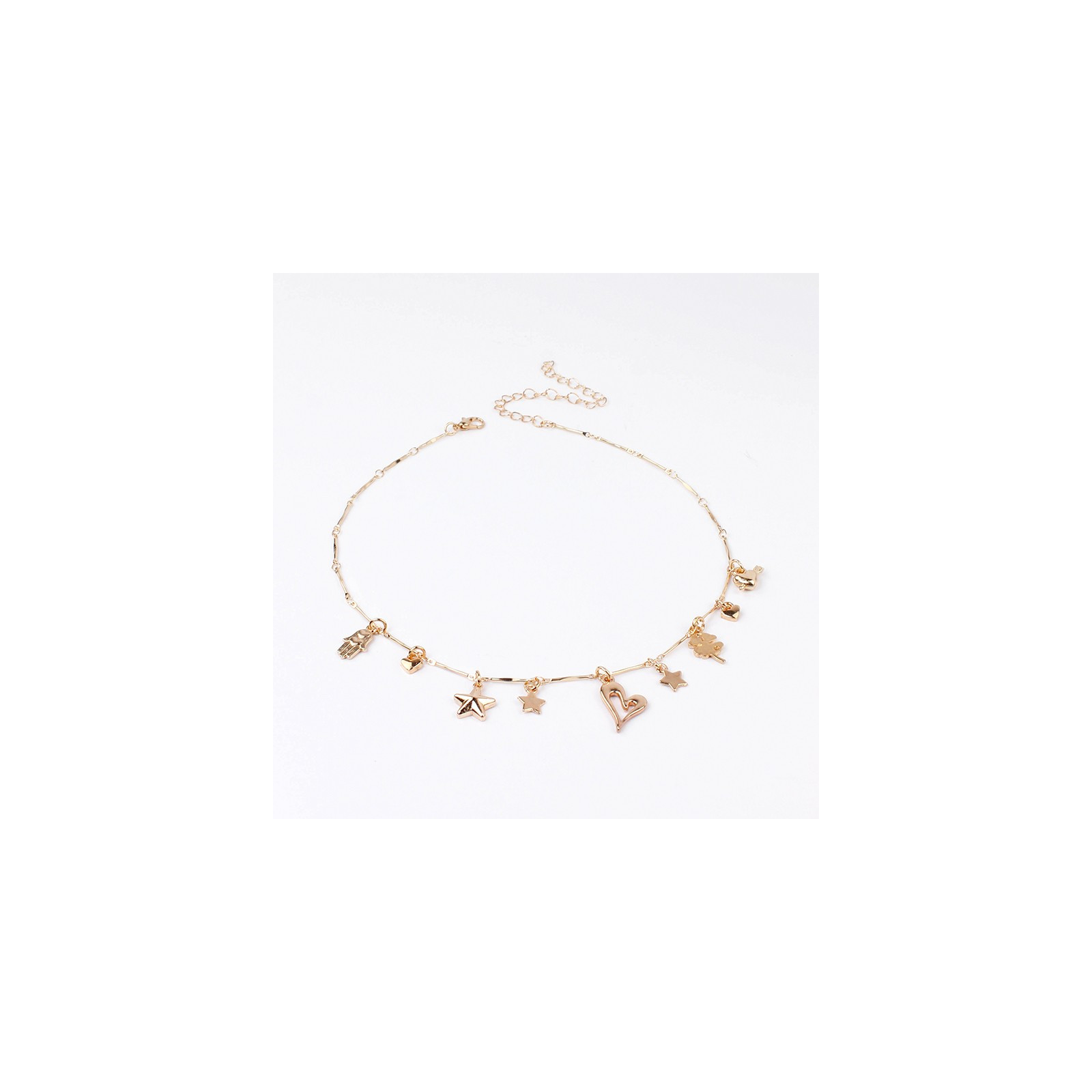 Collar corto de cadena diferenciada con múltiples charms exclusivos dorados.