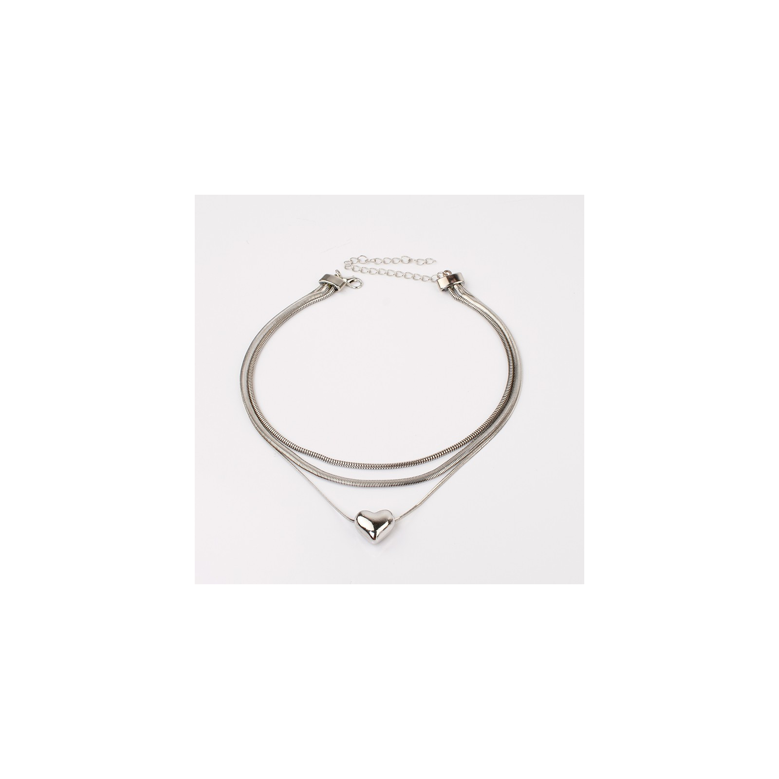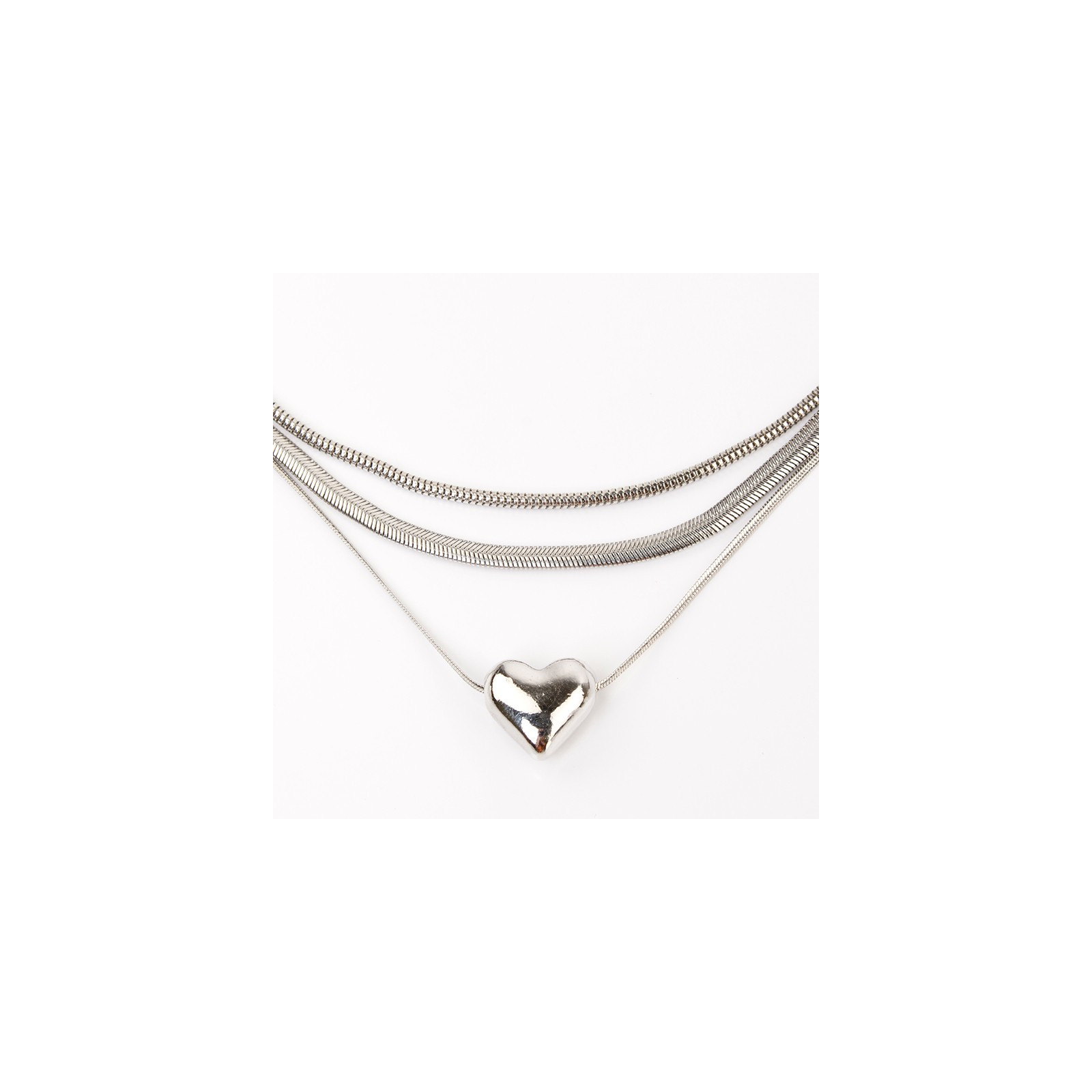 Collar corto de triple caída de cadena diferenciada con dije exclusivo con forma de corazón níquel.