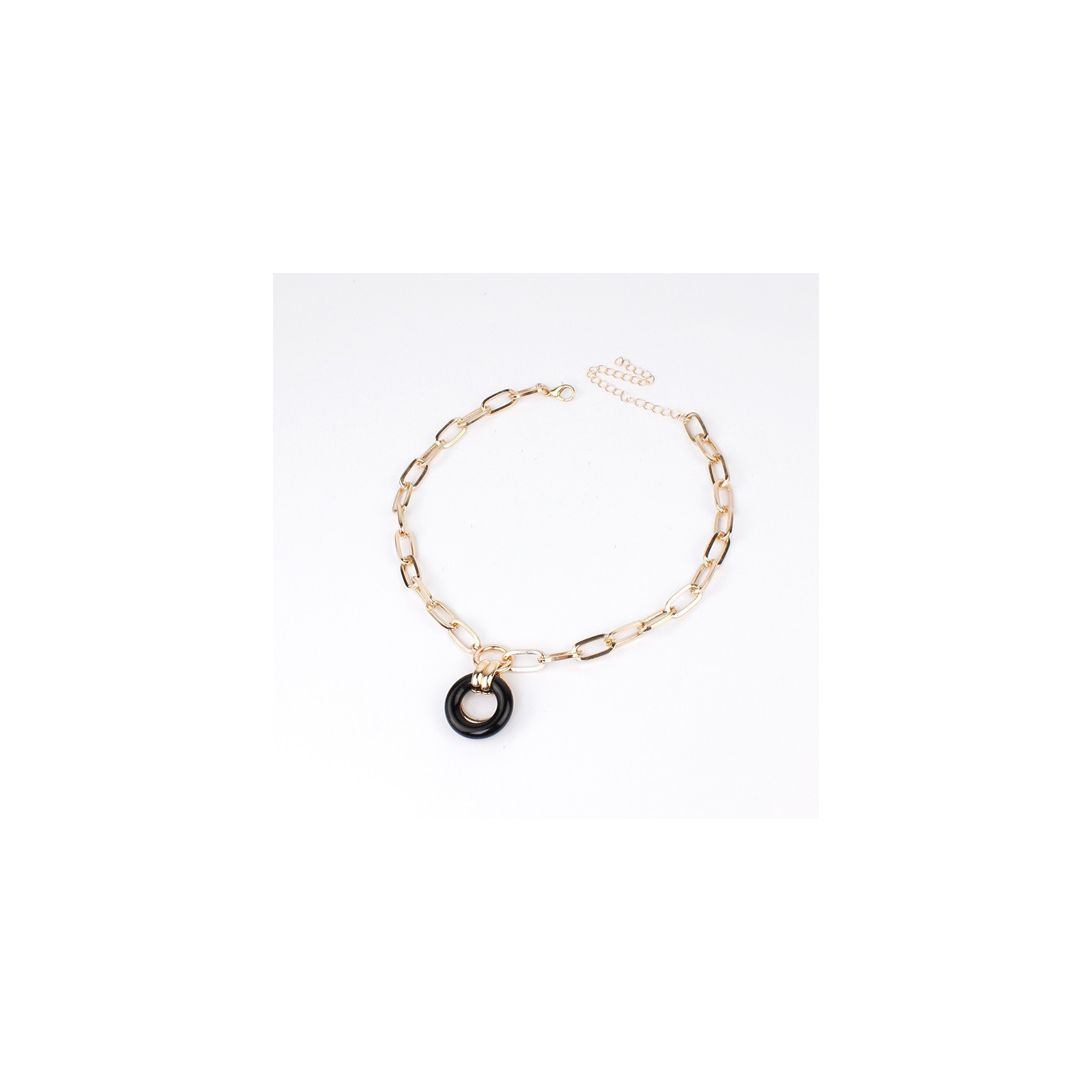 Collar largo de cadena diferenciada, intervenida con piezas circulares de ccb y acrílico.