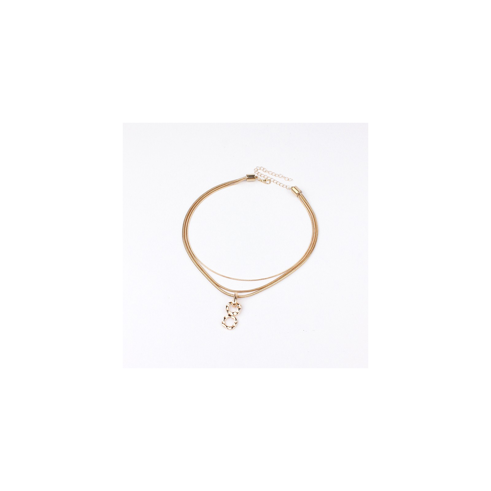 Collar de triple caída de cadenas diferenciadas, con dije exclusivo con forma orgánica texturizada.