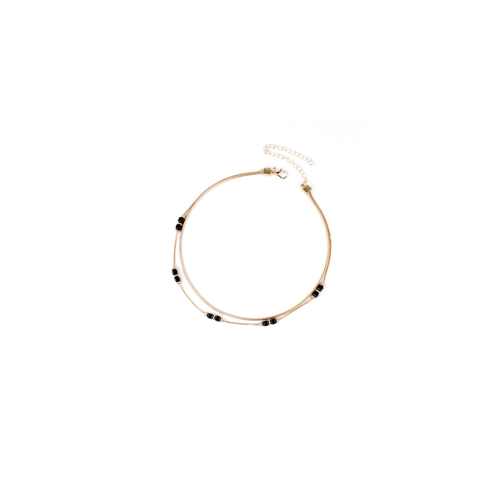 Collar corto de doble caída de cadenas diferenciadas, intervenida con rocas de cristal cúbicas.