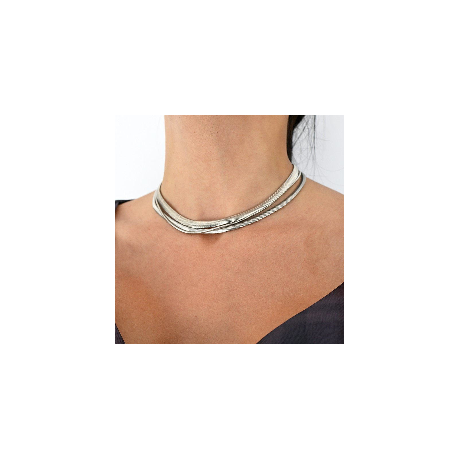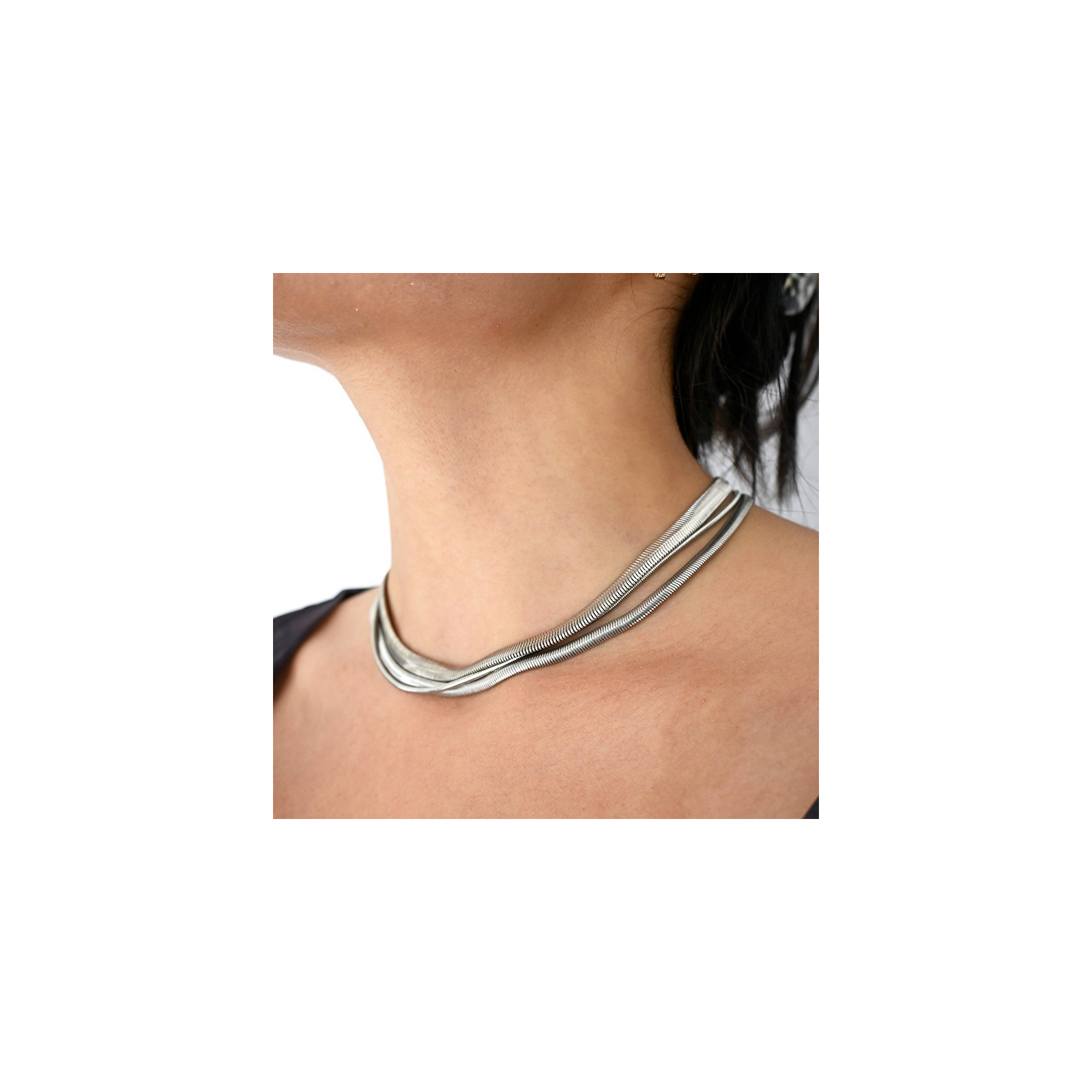 Collar de triple caída de cadena diferenciada níquel.