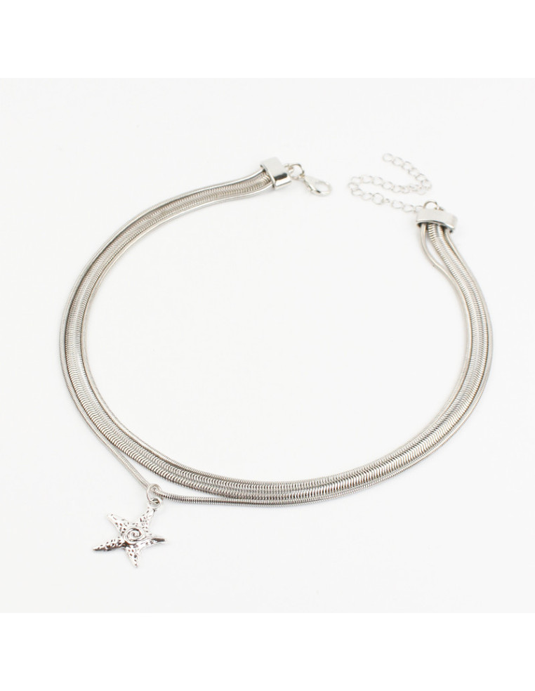 Collar de triple caída de cadenas diferenciadas con dije marino de fundición níquel.