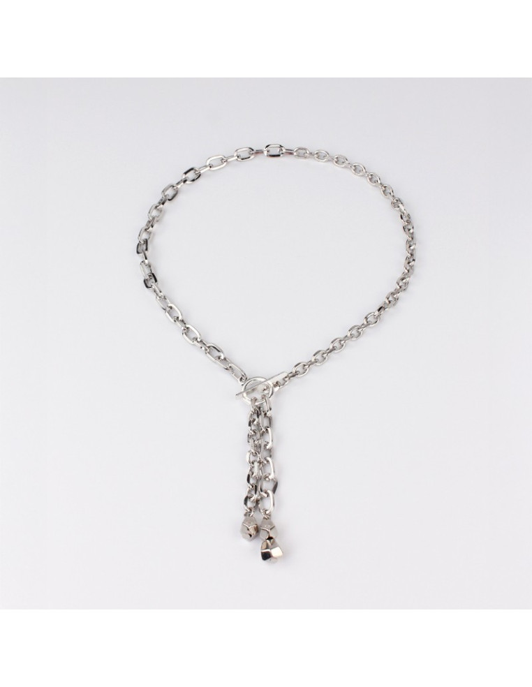 Collar de cadenas diferenciadas intervenidas, con caída adicional de cadenas y piezas de CCB colgantes.