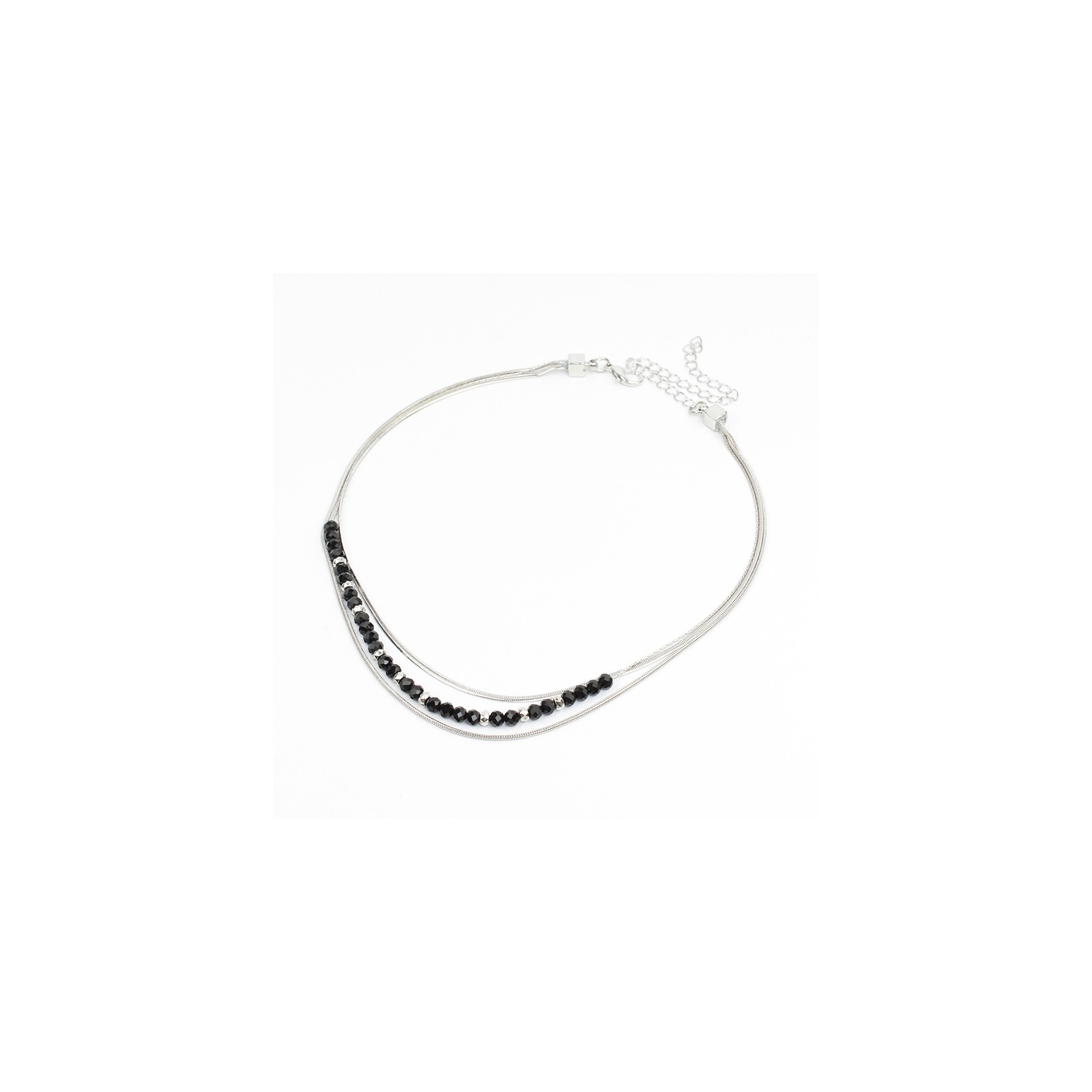 Collar de triple caída de cadenas diferenciadas, una de ellas intervenidas con rocas de cristal y piezas pasantes de CCb diferenciadas.