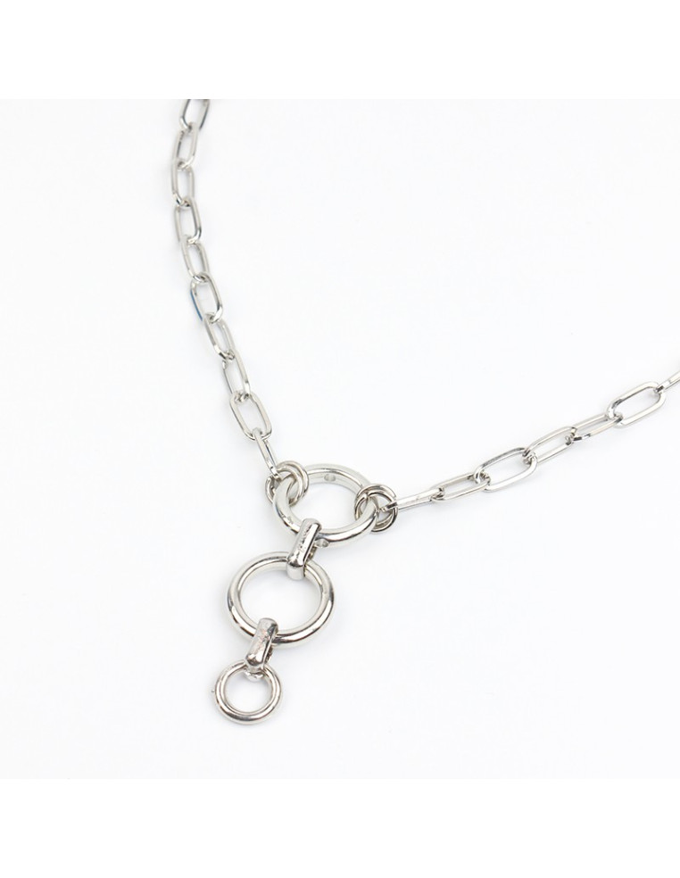 Collar de cadena diferenciada con dije intervenido de argollas.