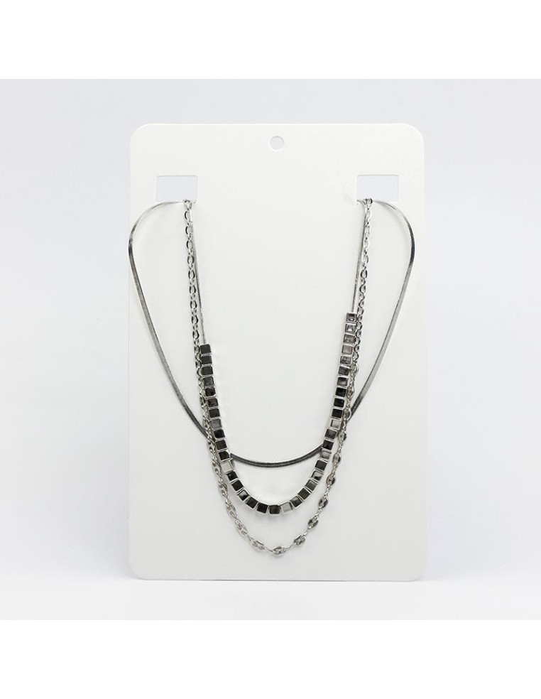 Collar de triple caída de cadenas diferenciadas, una de ellas intervenidas con piezas pasantes de CCB de forma cúbicas.