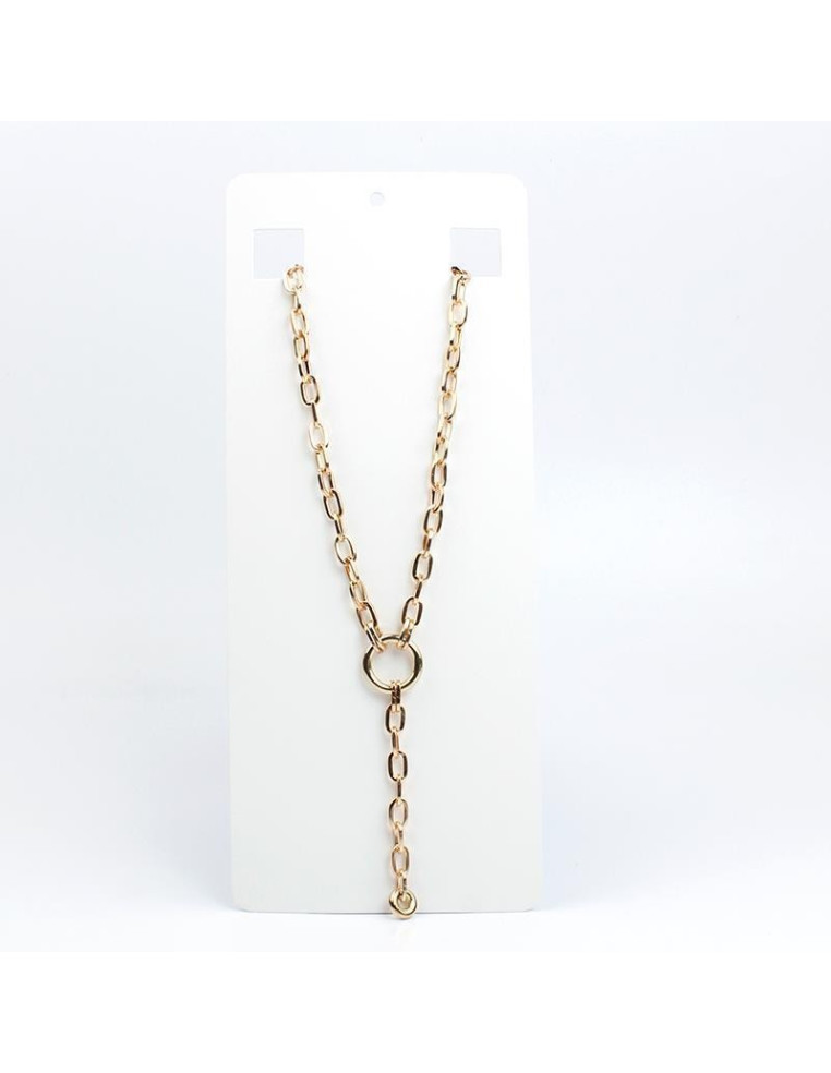 Collar corbatero de cadena diferenciada, intervenida con argolla y caída adicional de cadena.