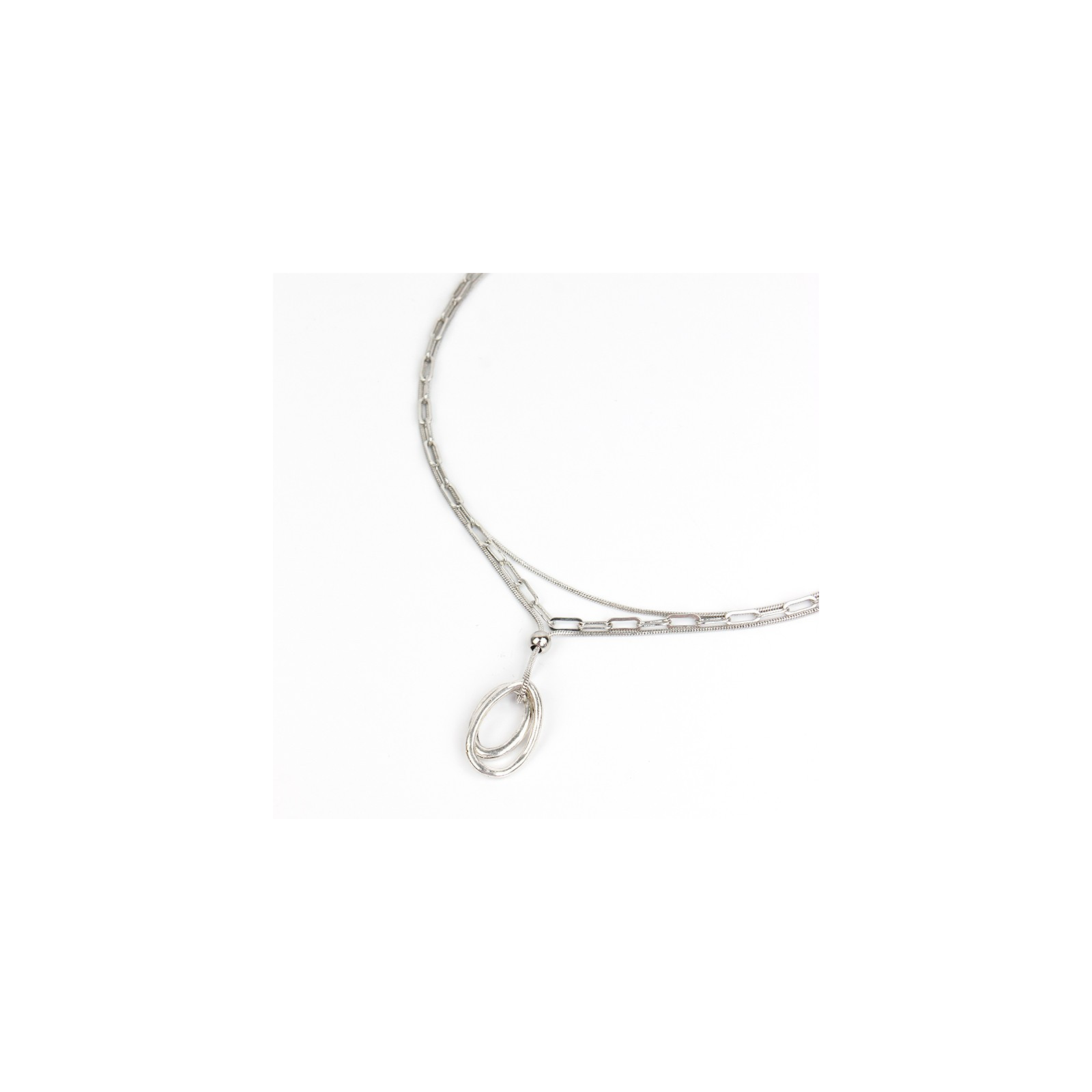Collar de triple caída de cadenas diferenciadas con dije exclusivo oval.