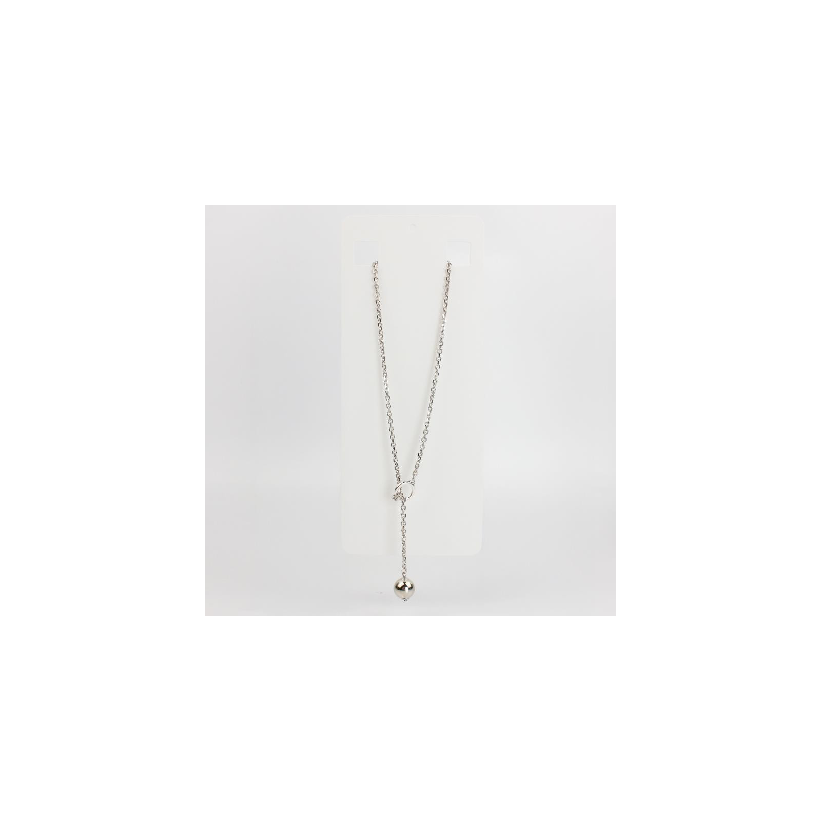 Collar largo de cadena diferenciada intervenida con bolita de CCB níquel y cierre marinero exclusivo en el centro.