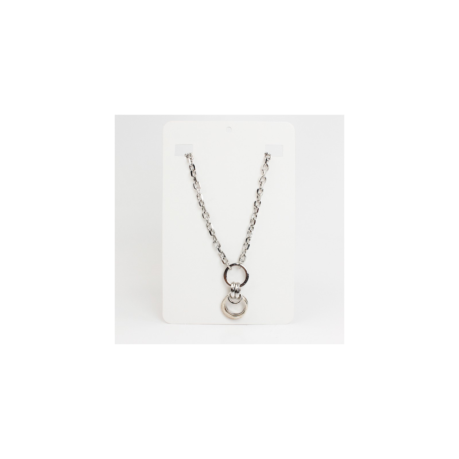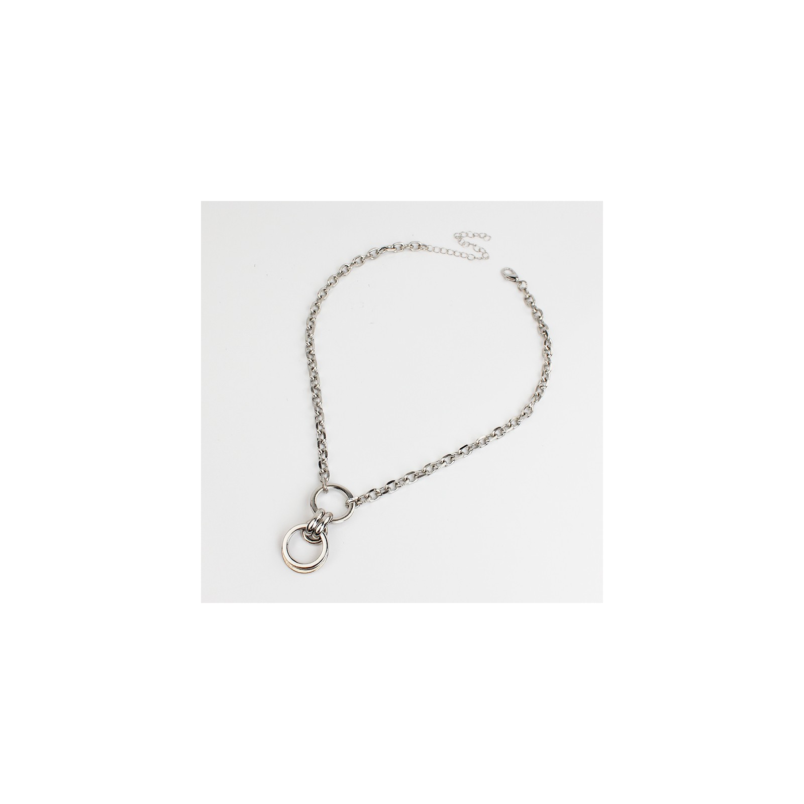 Collar corto de cadena diferenciadas intervenida con múltiples argollas diferenciadas.