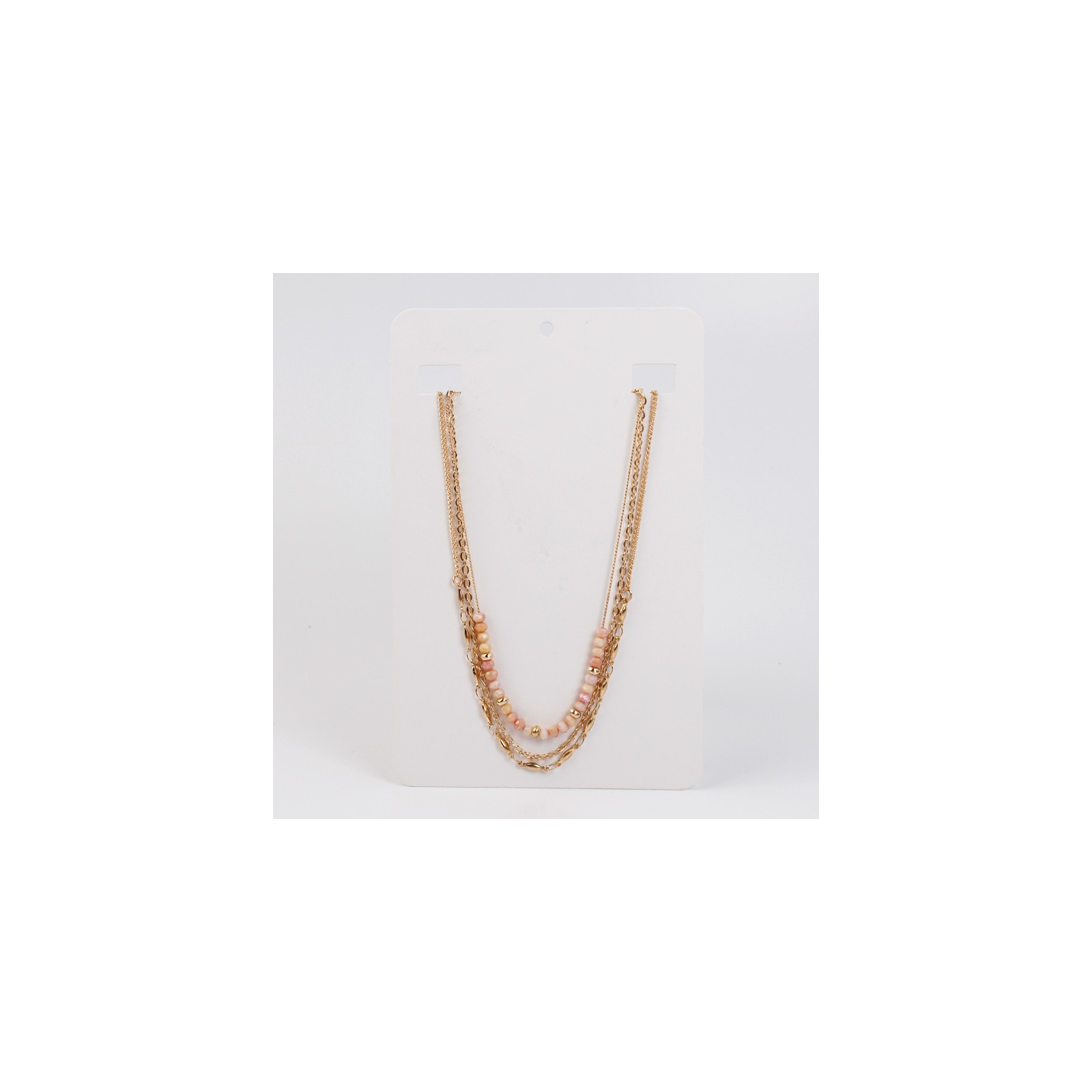 Collar de triple caída de cadenas diferenciadas, una de ellas enhebrada con rocas de cristal combinadas con pasantes de CCB.