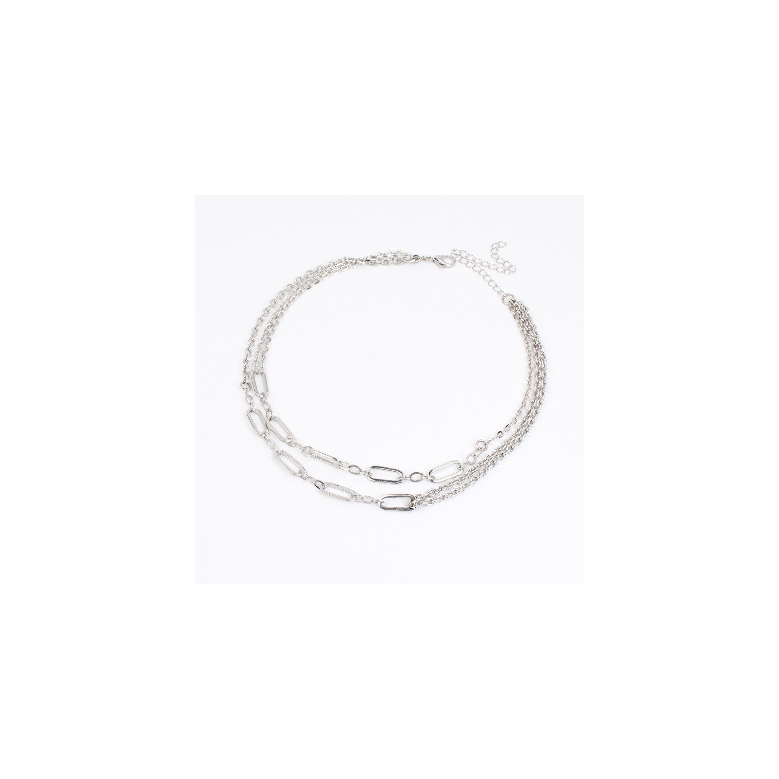 Collar de doble caída de cadenas diferenciadas, intervenidas con eslabones exclusivos.