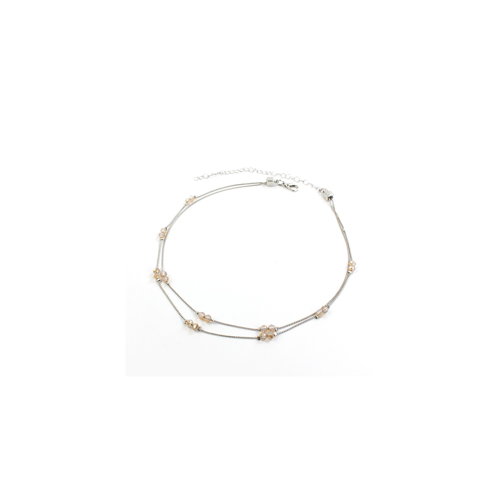Collar de doble caída con cadena exclusiva intervenida con rocas de cristal.