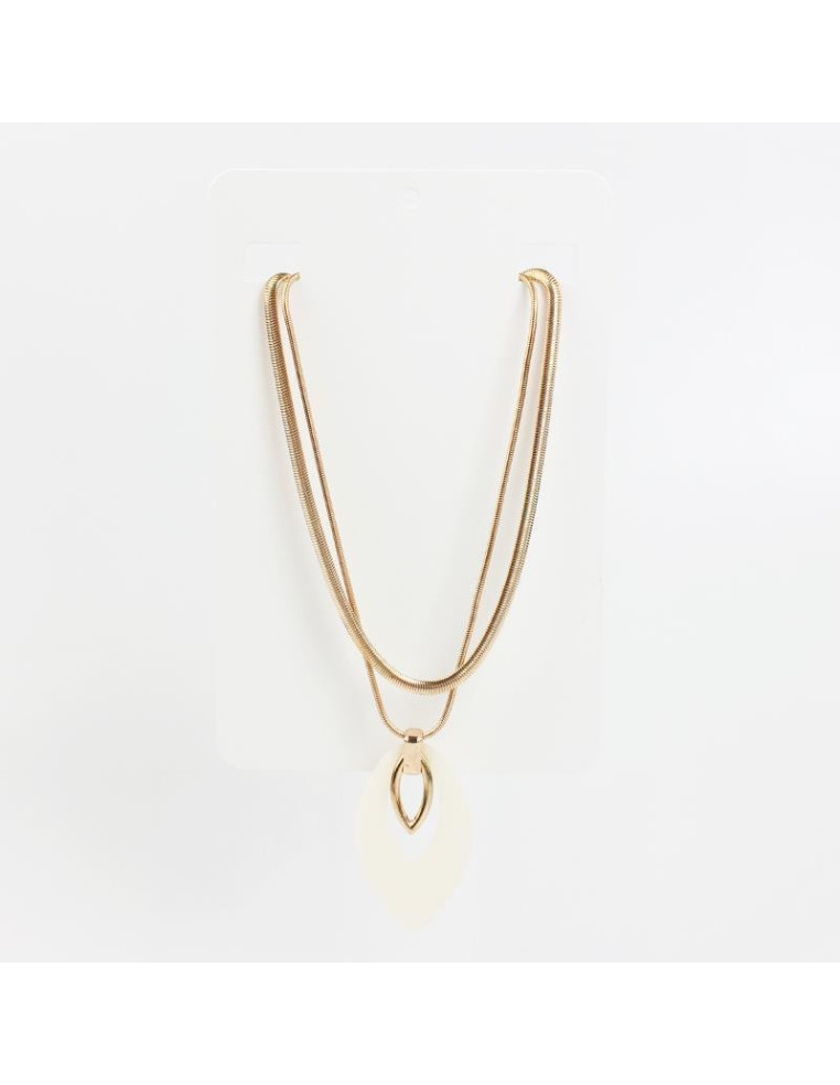 Collar corto de doble caída de cadenas diferenciadas con dije de diseño exclusivo de acrílico.