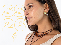 Collar de cadena diferenciada con múltiples dijes exclusivos de vidrio y de strass dorados.
