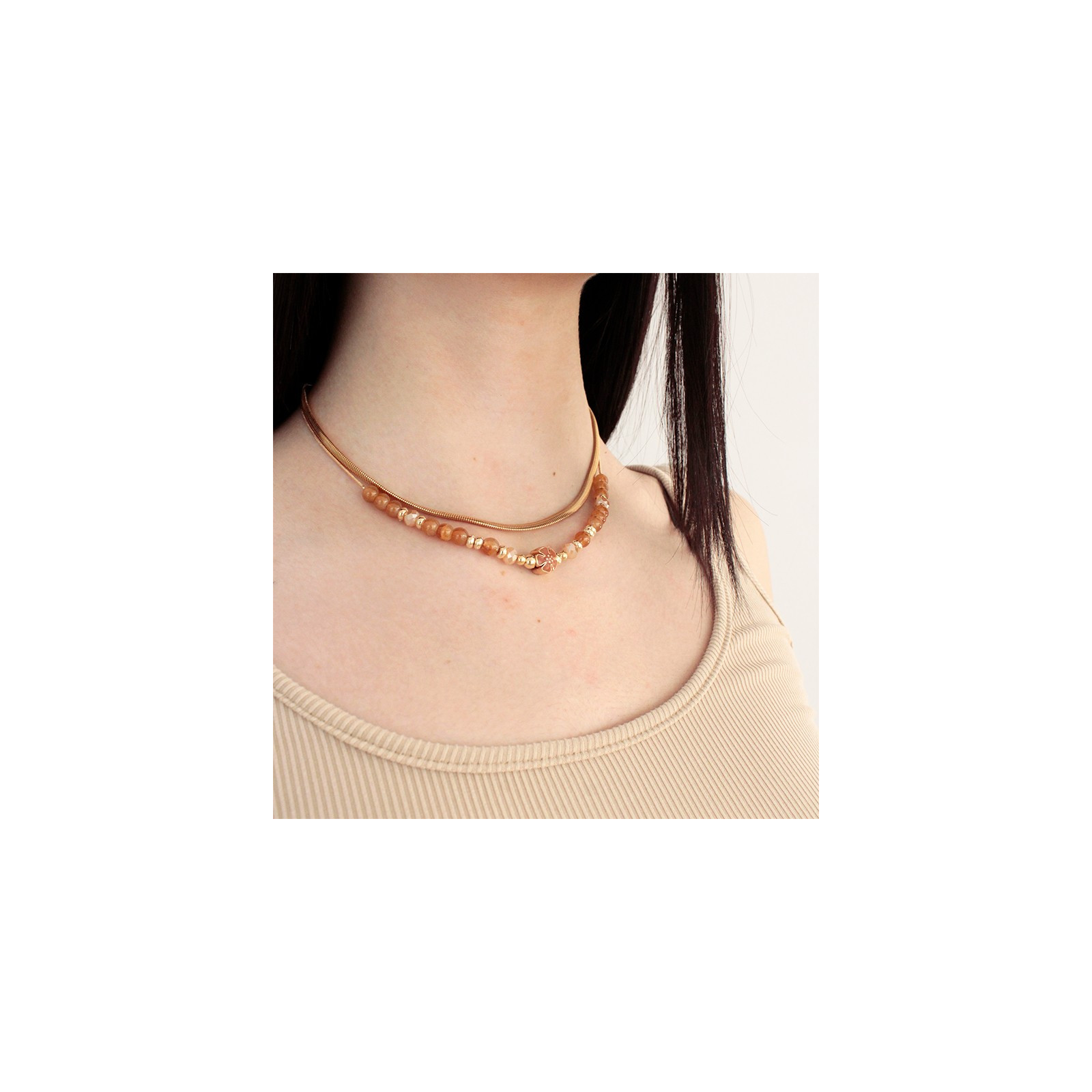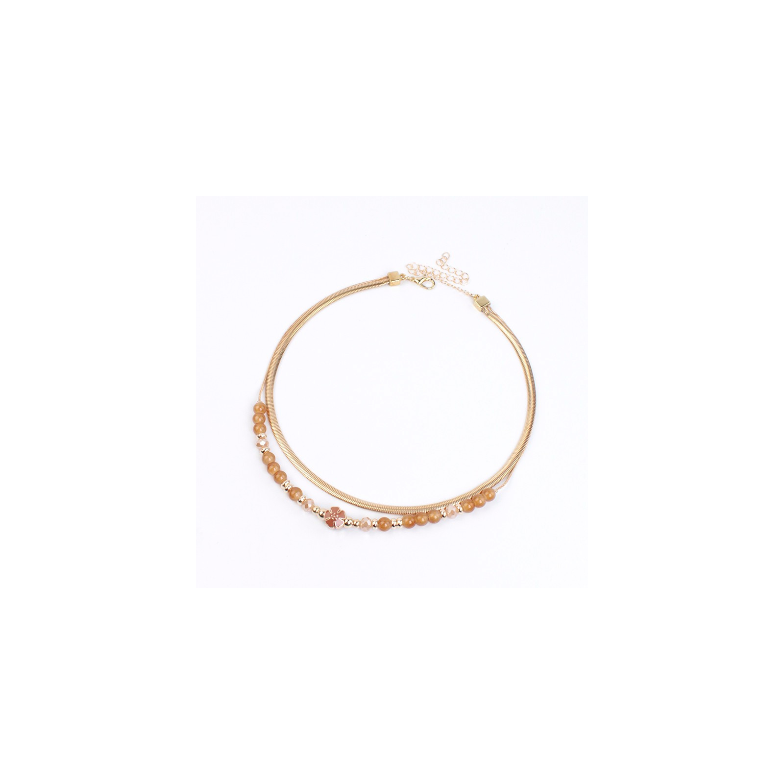 Collar corto de doble caída de cadena diferenciada con piezas de vidrio, roca de cristal y dijes exclusivos pintado a mano.