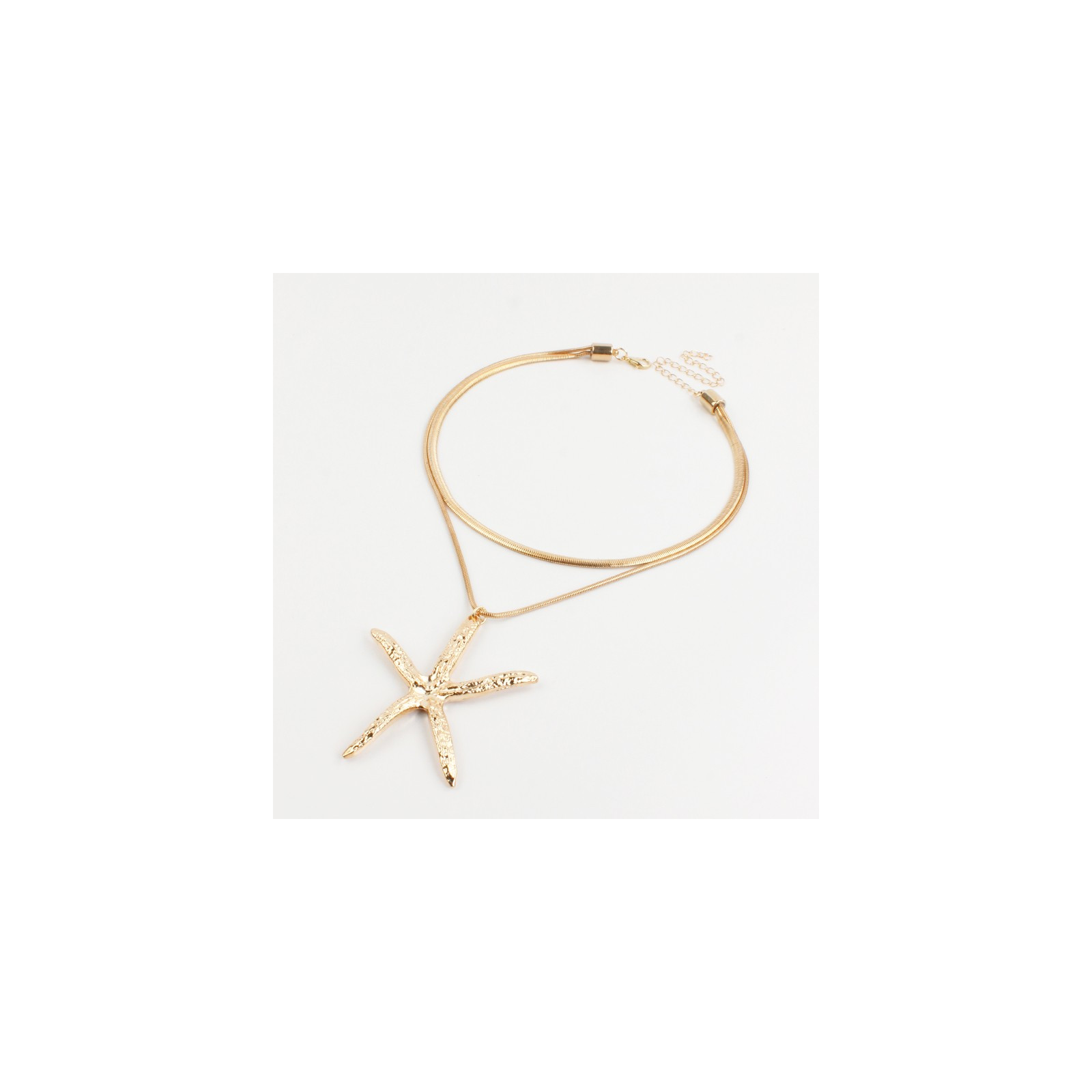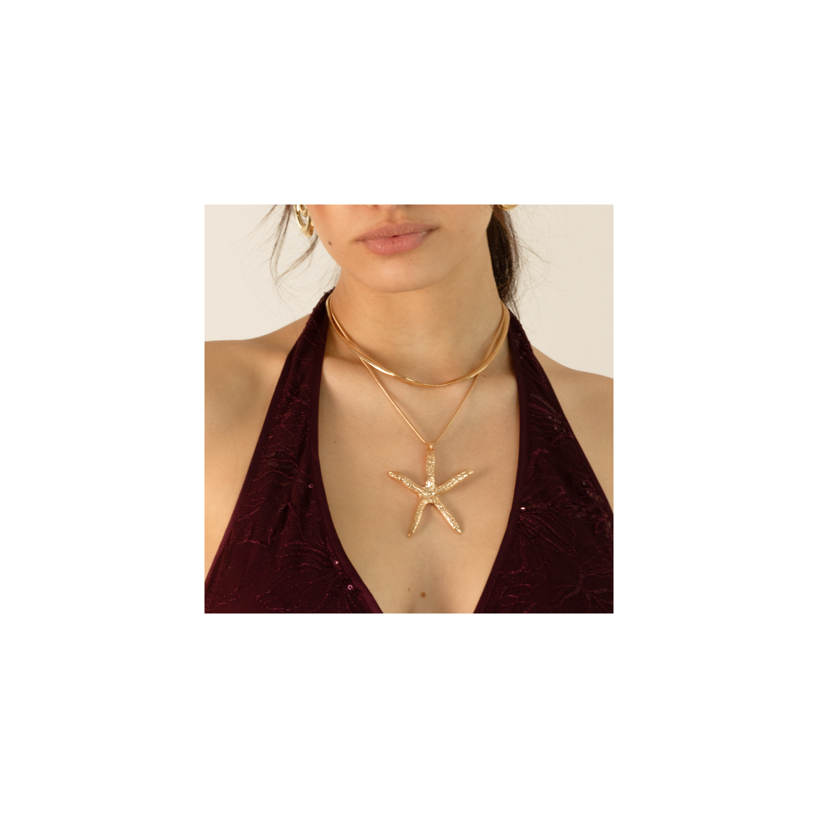 Collar de doble caída de cadenas diferenciadas con dije exclusivo de fundición con forma de estrella marina.