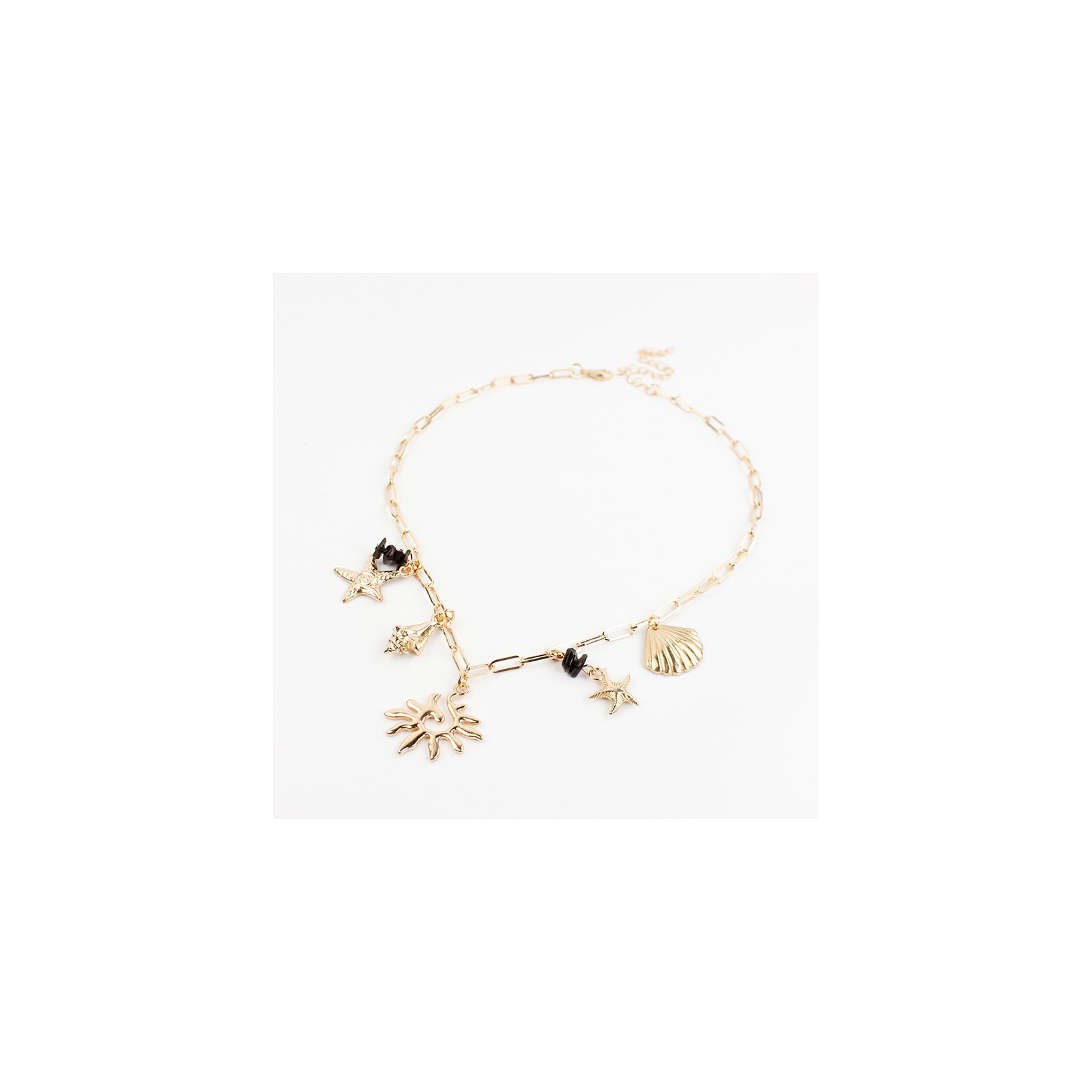 Collar de cadena diferenciada con múltiples dijes exclusivos de fundición marinos combinados con escallas de colores.