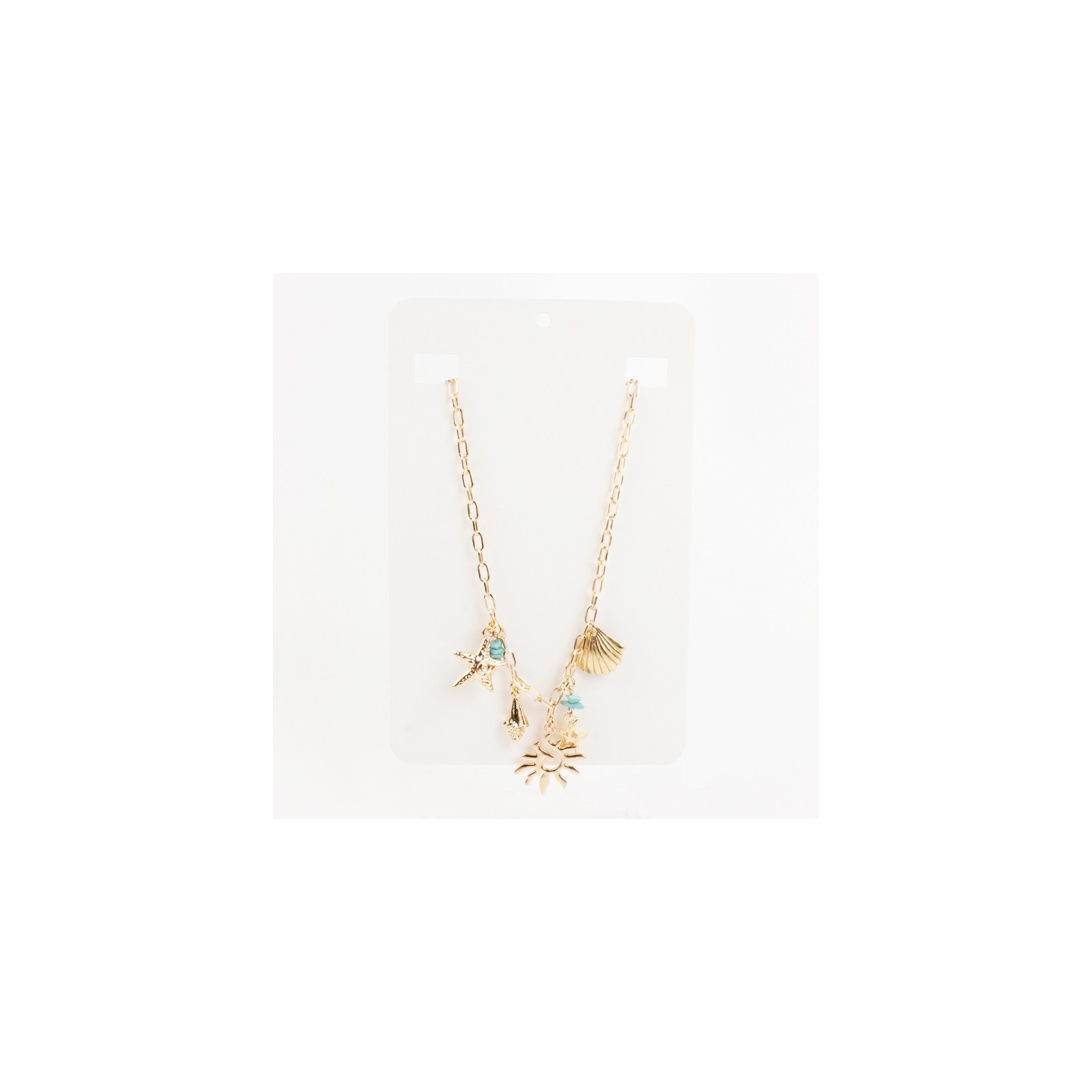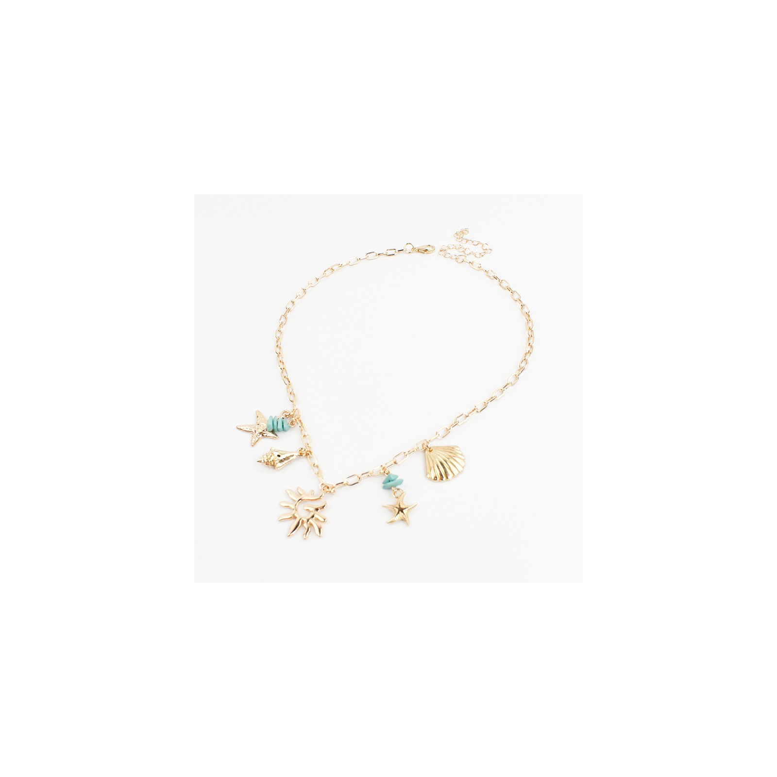 Collar de cadena diferenciada con múltiples dijes exclusivos de fundición marinos combinados con escallas de colores.