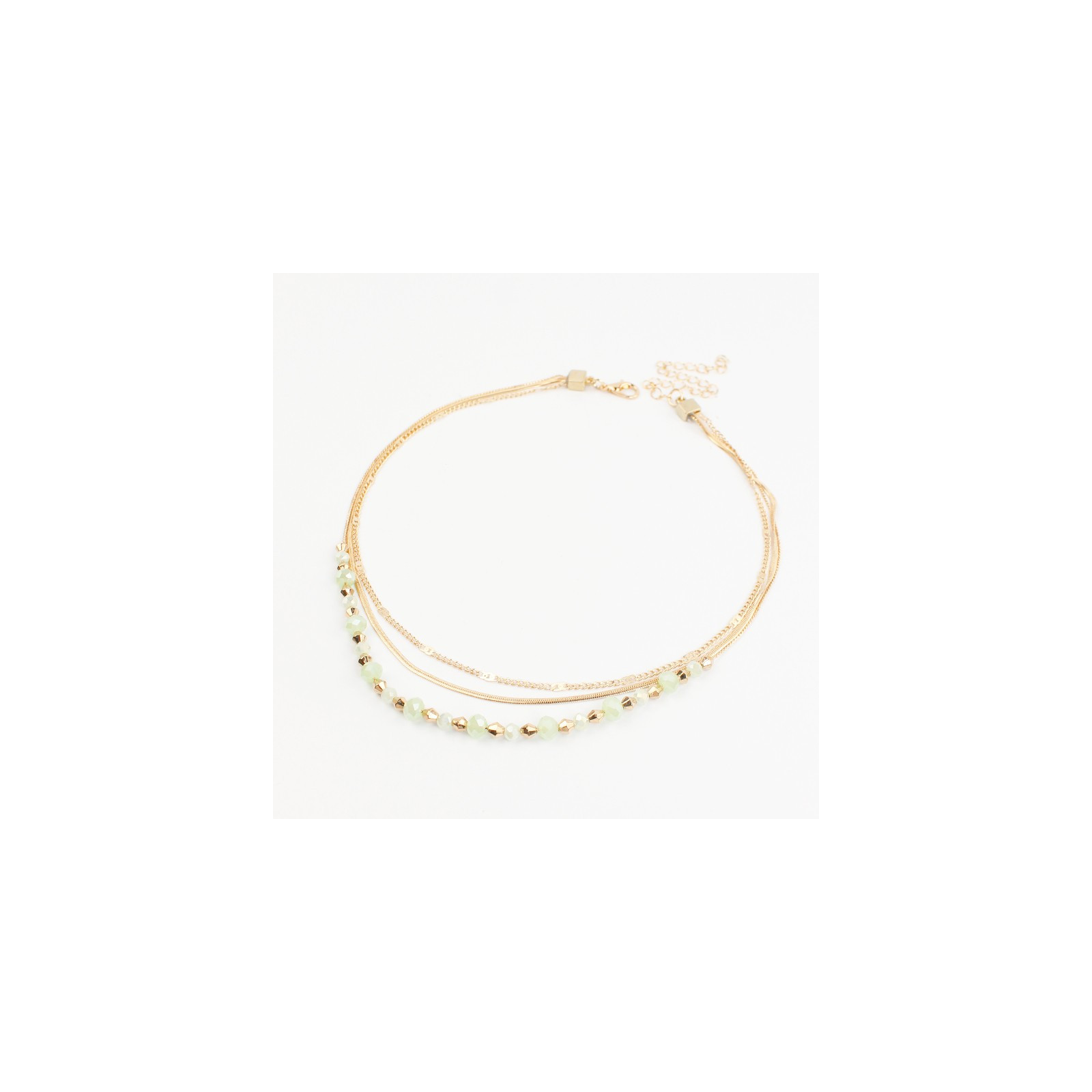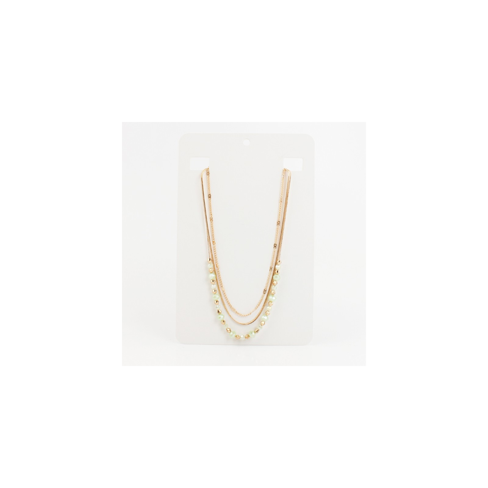 Collar de triple caída de cadenas diferenciadas, una de ellas enhebrada con rocas de cristal y pasantes de CCb.