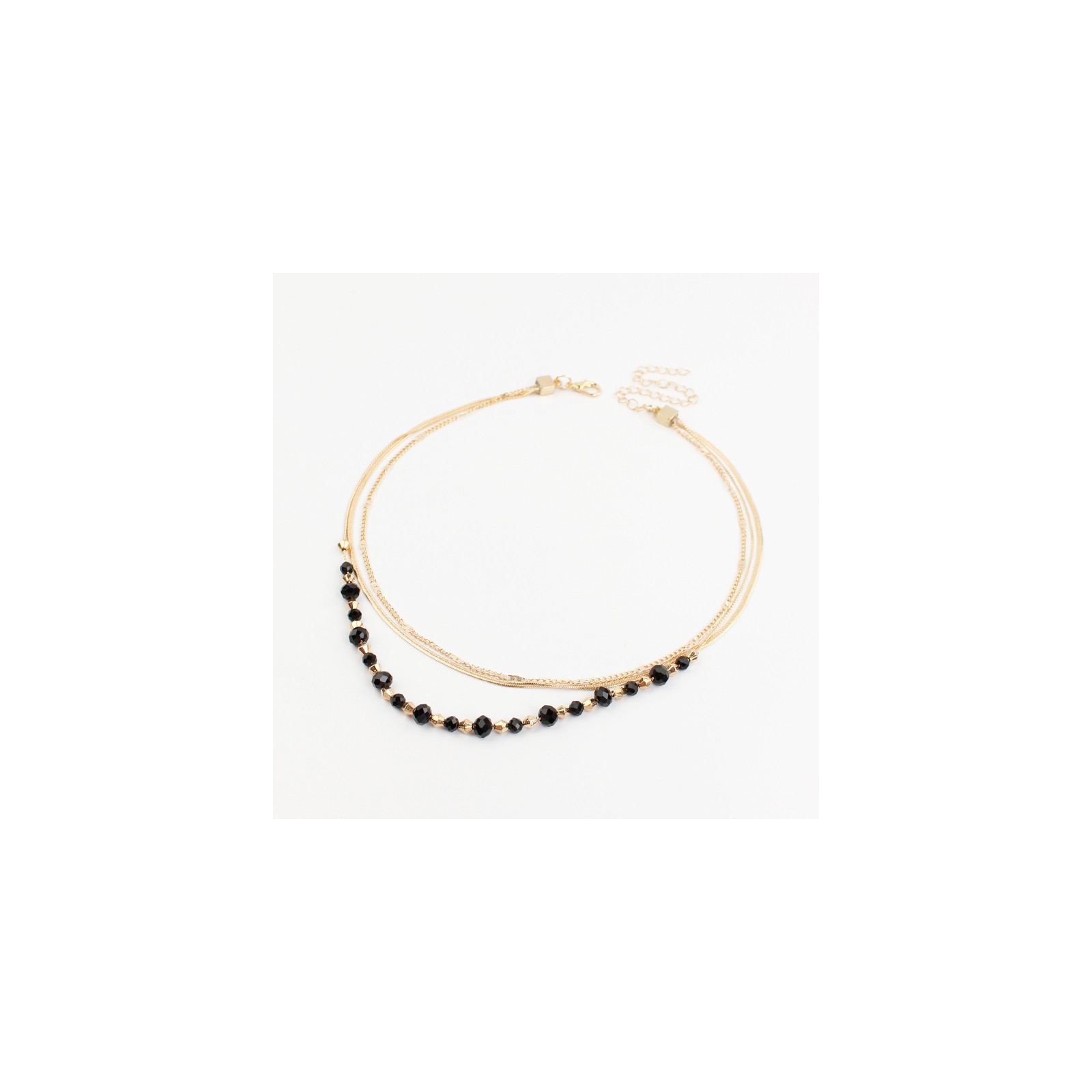 Collar de triple caída de cadenas diferenciadas, una de ellas enhebrada con rocas de cristal y pasantes de CCb.