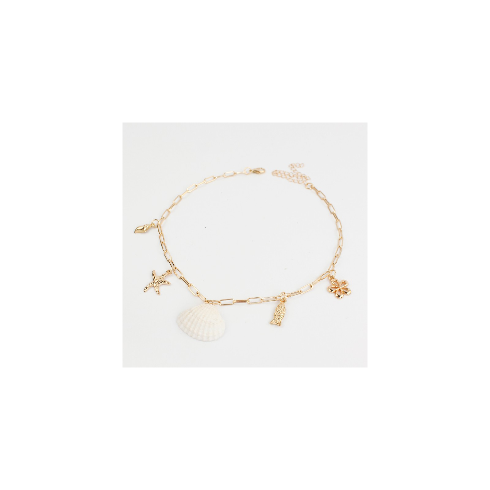 Collar multidije de cadena diferenciada con múltiples dijes exclusivos de fundición y dije de caracol natural.