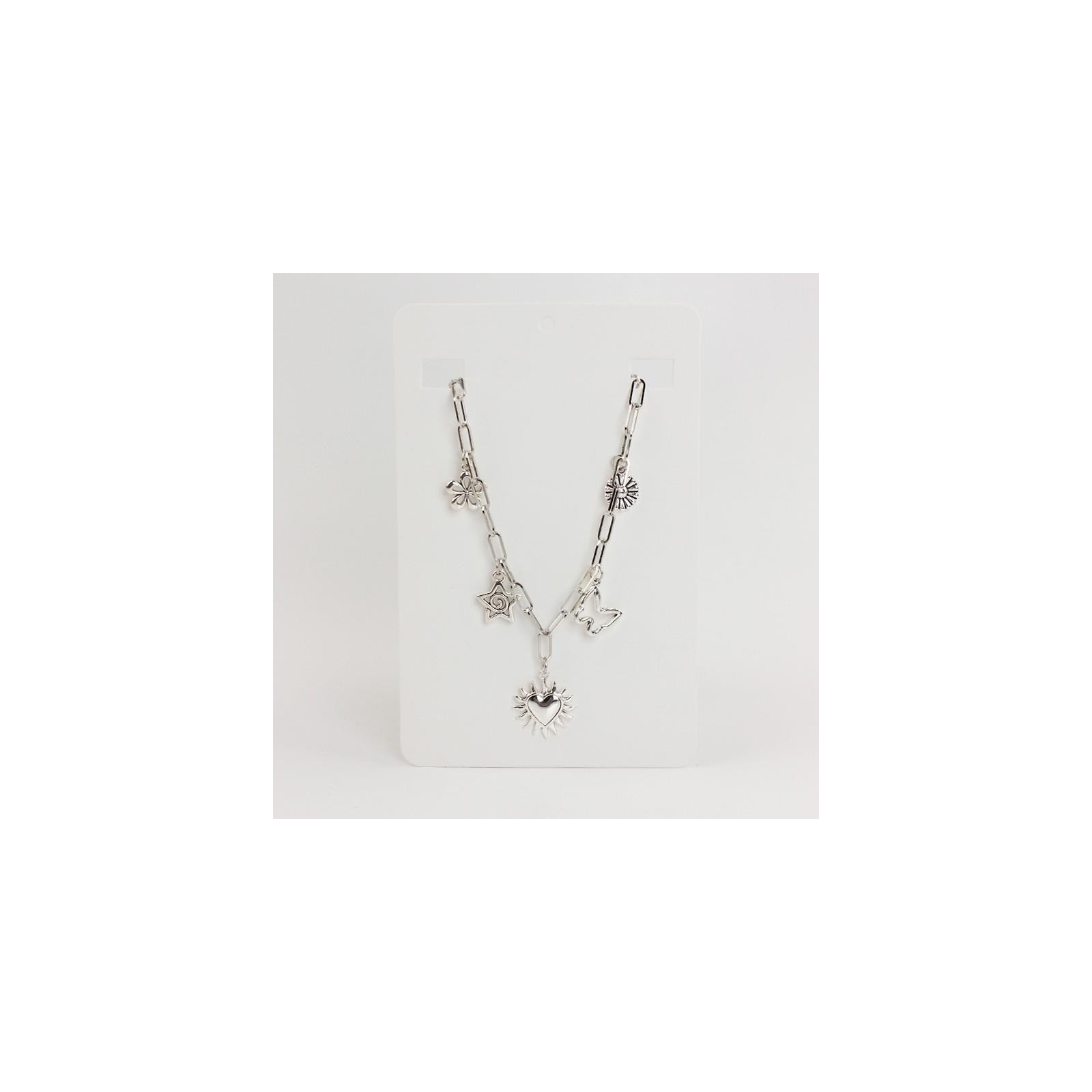 Collar multidije de cadena diferenciada con múltiples dijes exclusivos de distintas formas y tamaños.