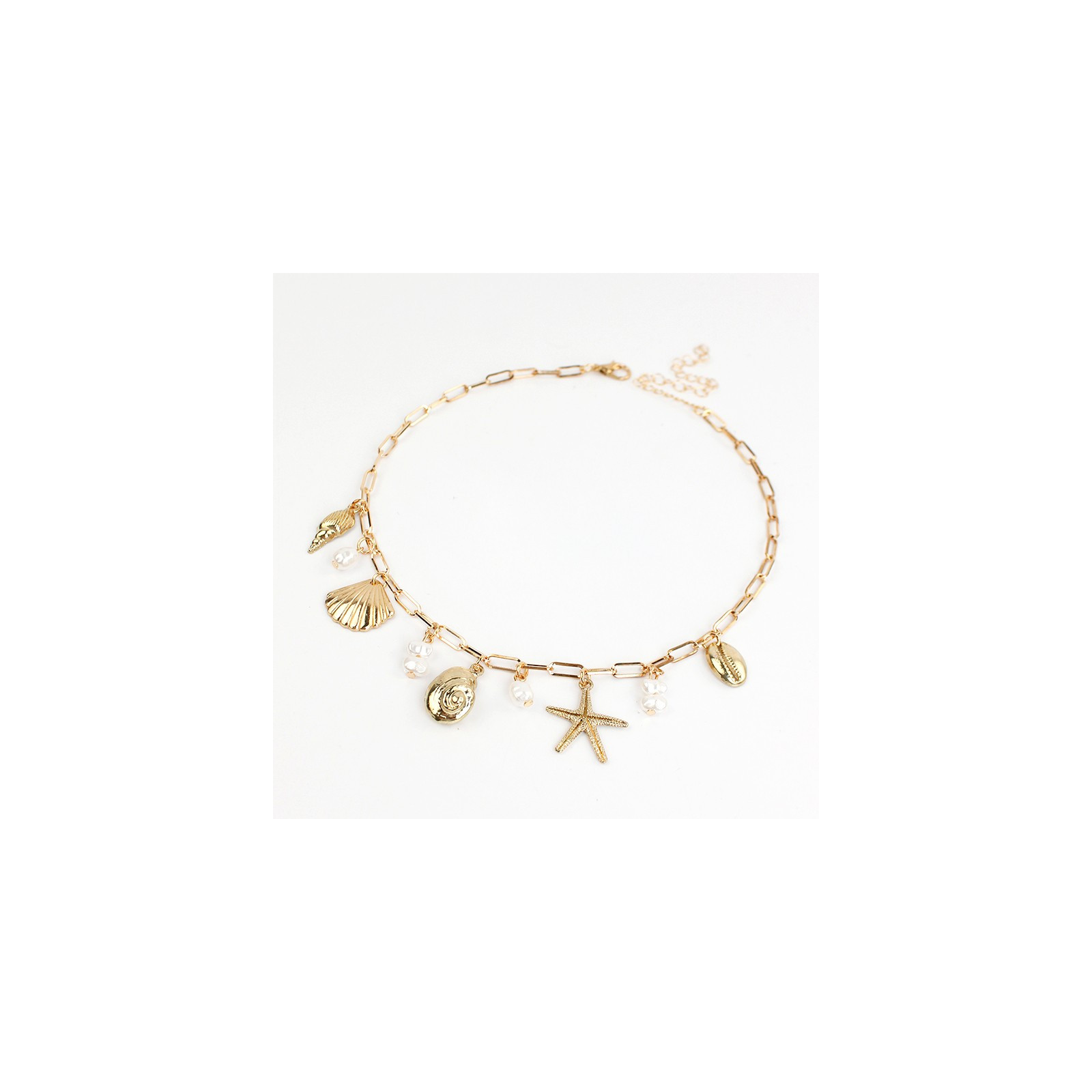 Collar multidije de cadena diferenciada, con dijes exclusivos de fundición marinos y perlas.