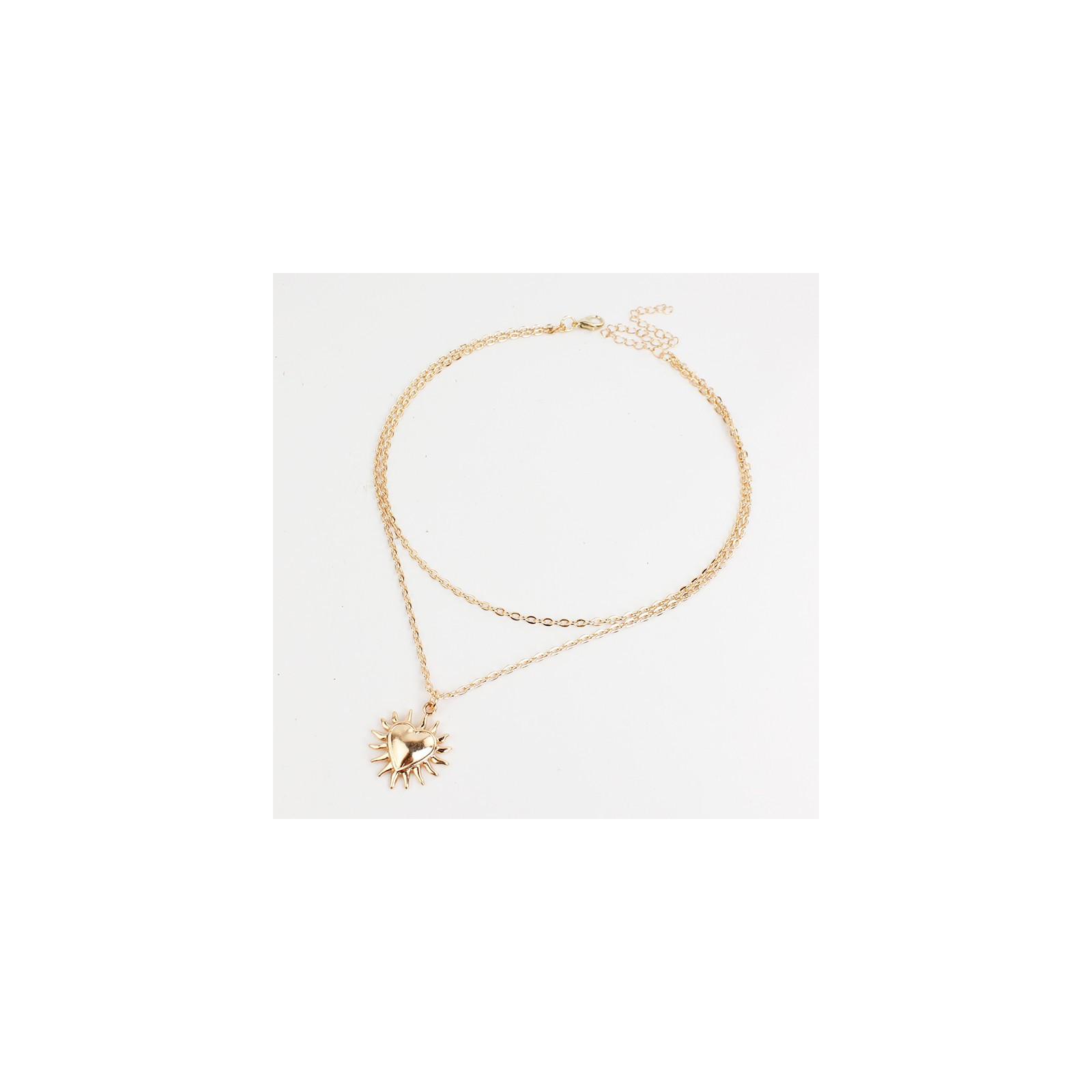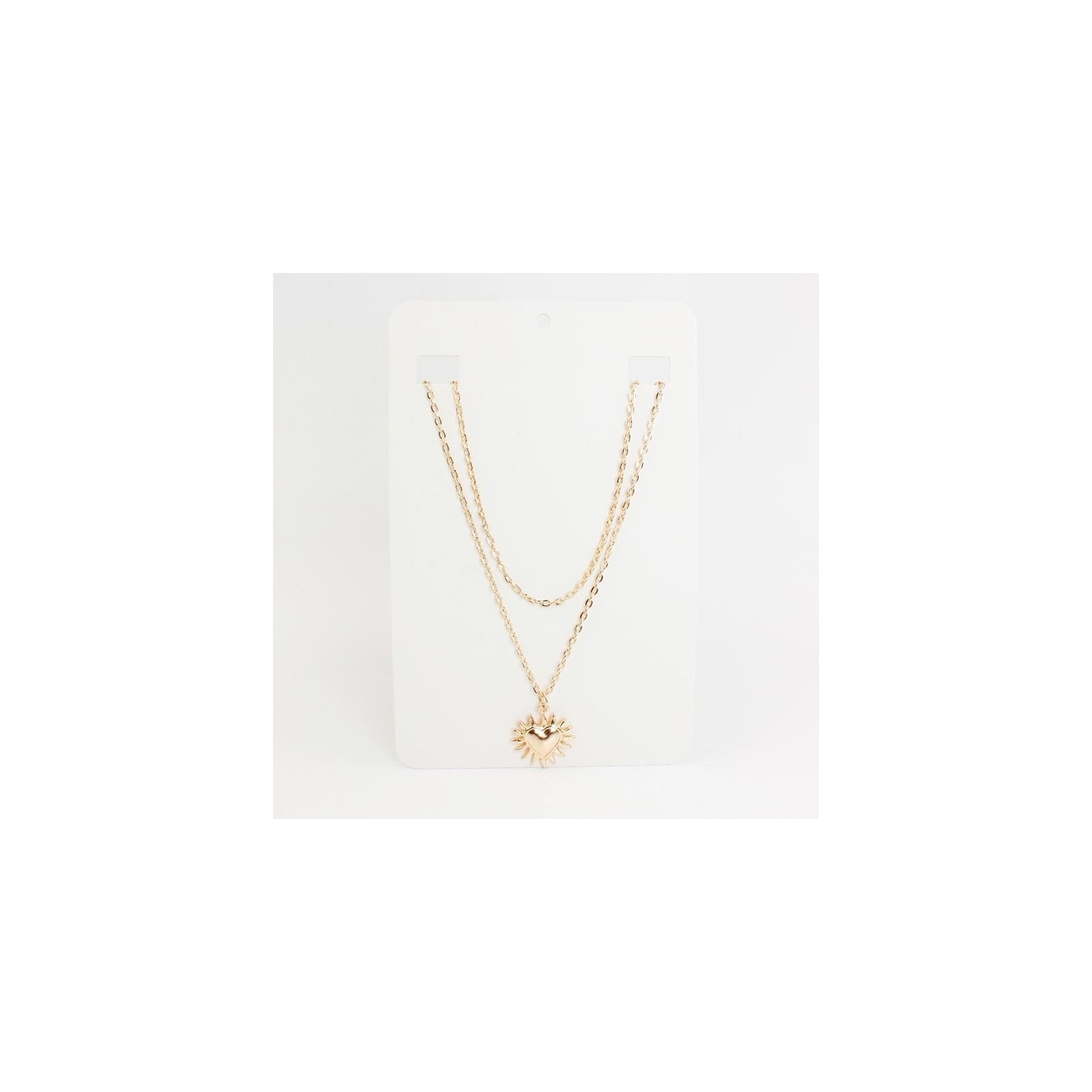 Collar de doble caída de cadenas diferenciadas, con dije exclusivo de fundición con forma de corazón dorado.