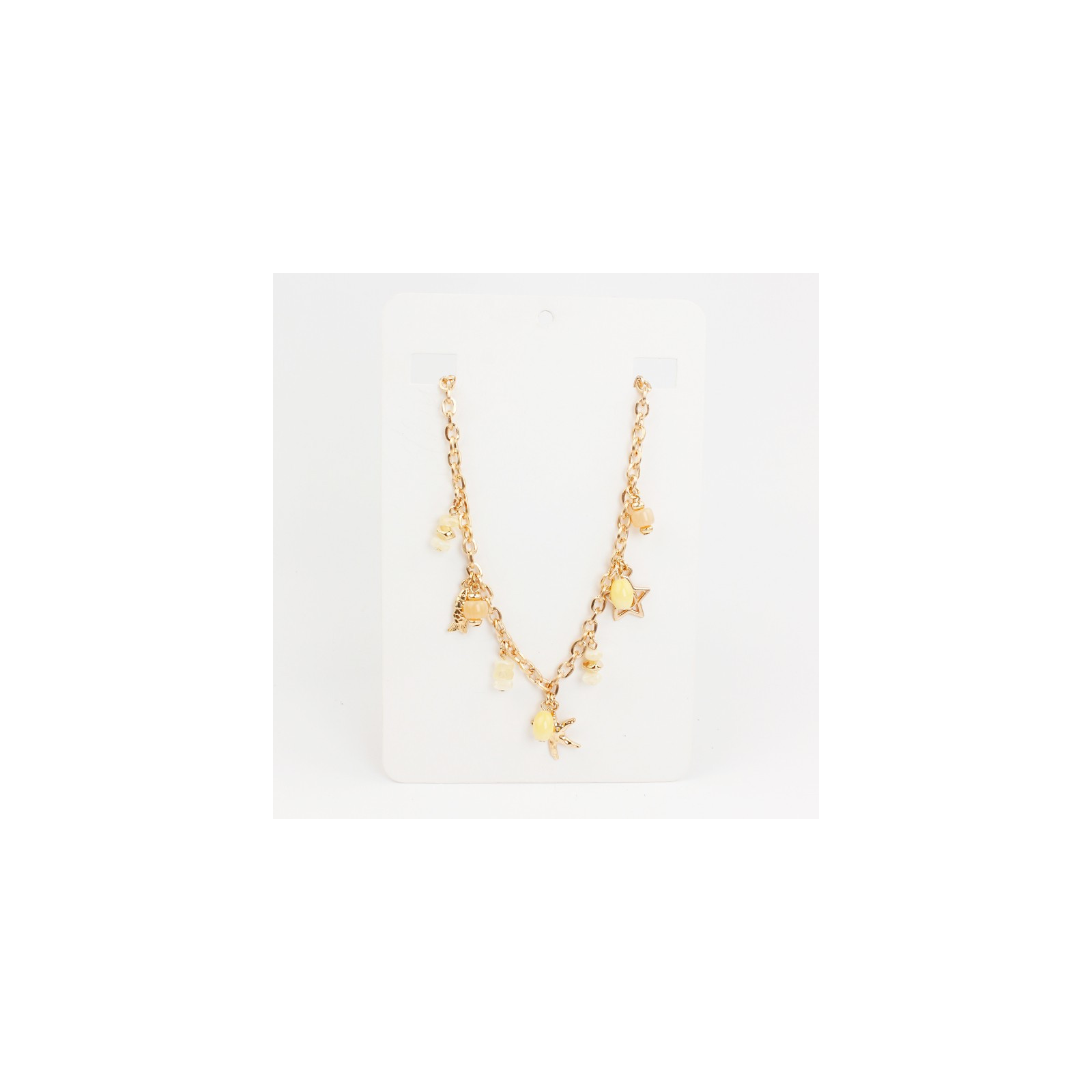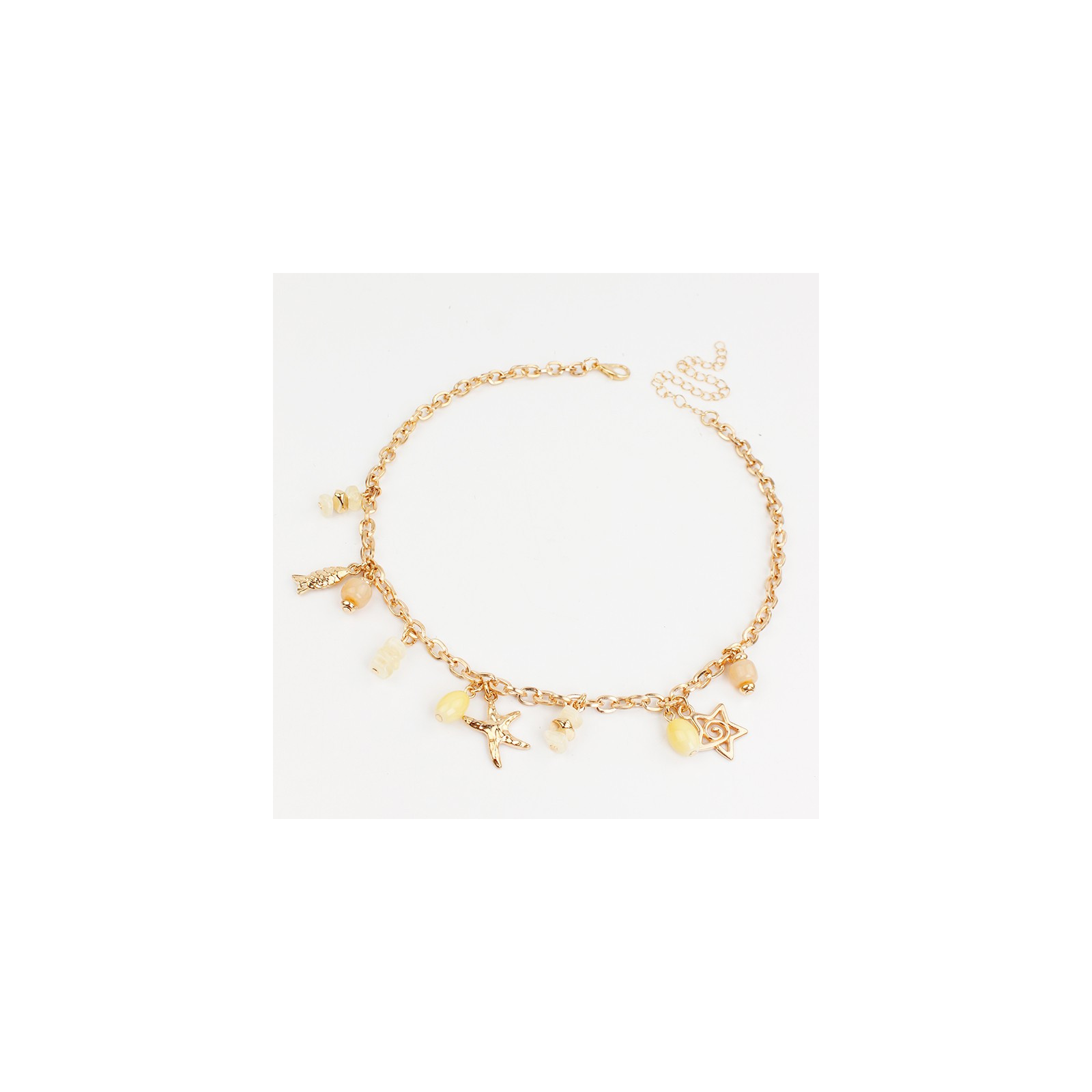 Collar multicharms de cadena diferenciada con dijes exclusivos de fundición marinos, cuentas de vidrio y escallas de acrílico.