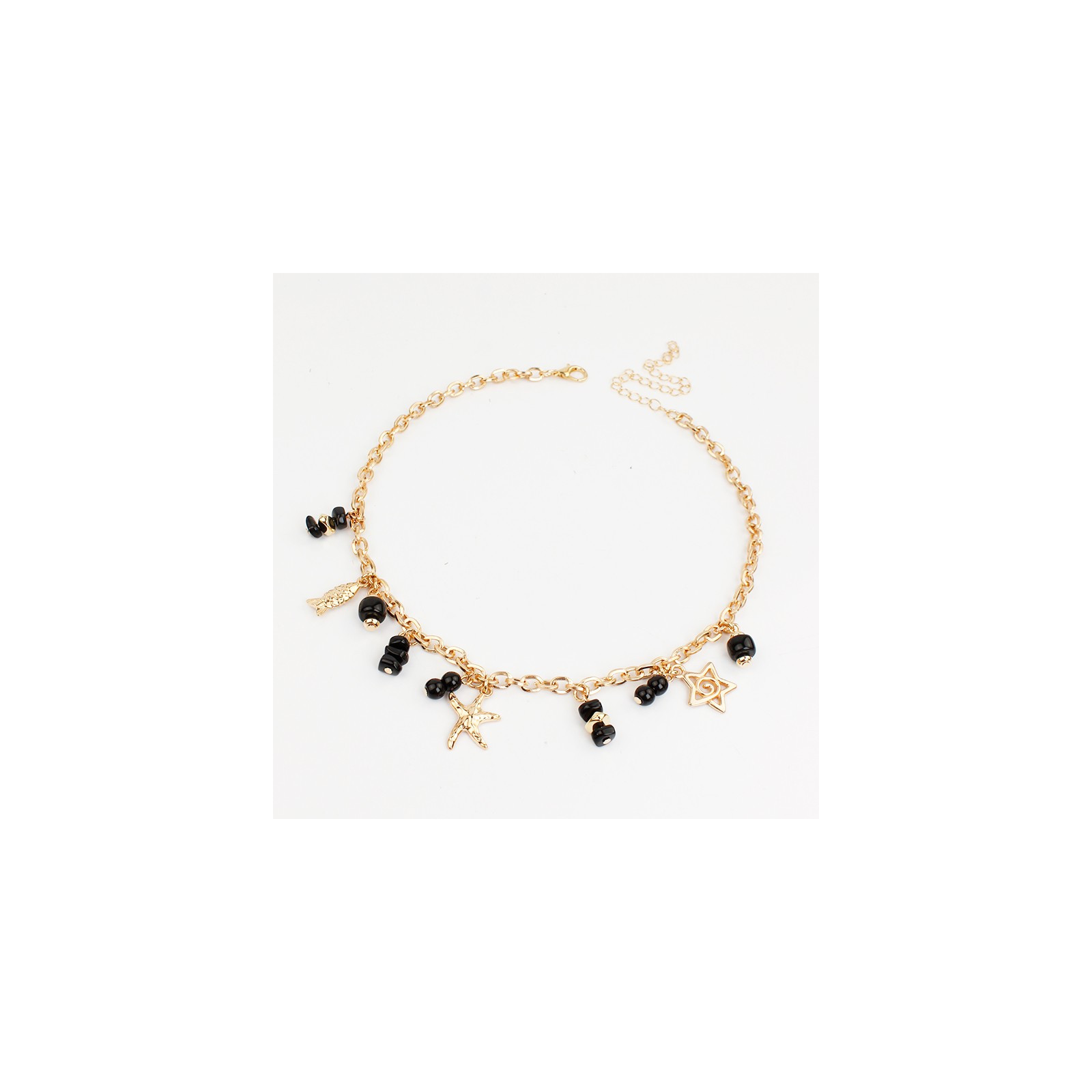 Collar multicharms de cadena diferenciada con dijes exclusivos de fundición marinos, cuentas de vidrio y escallas de acrílico.