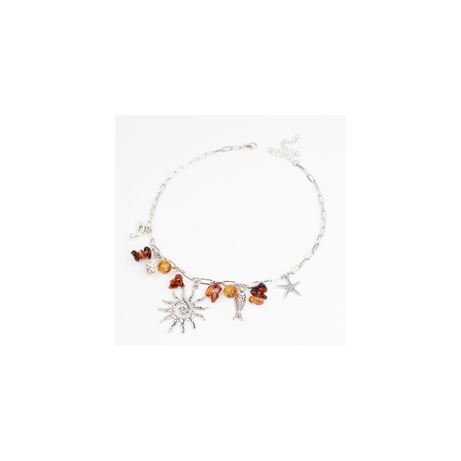 Collar multidije de cadenas diferenciadas con múltiples dijes exclusivos de fundición y piezas de acrílico.