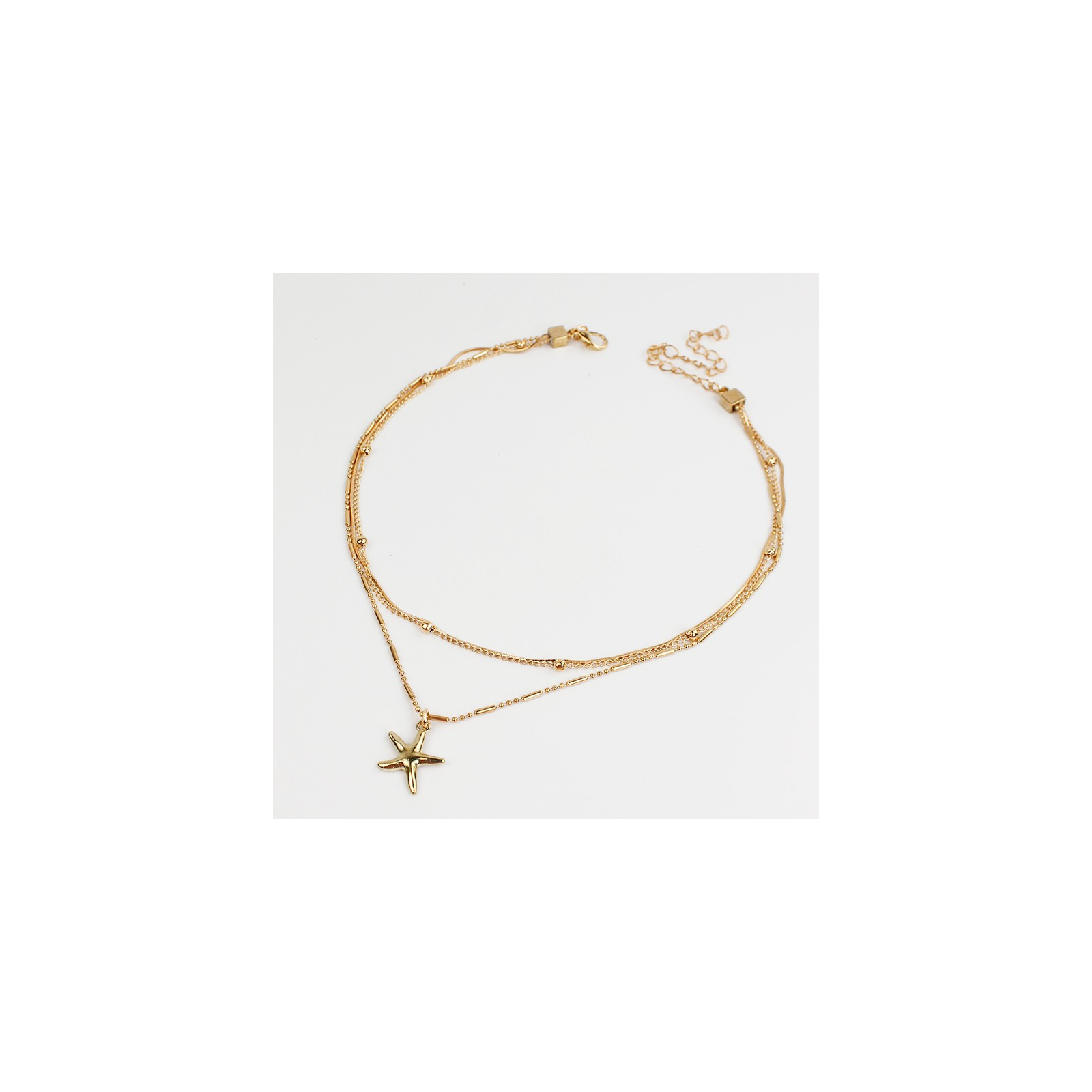 Collar de triple caída de cadenas diferenciadas, con dije exclusivo de fundición con forma de estrella de mar.