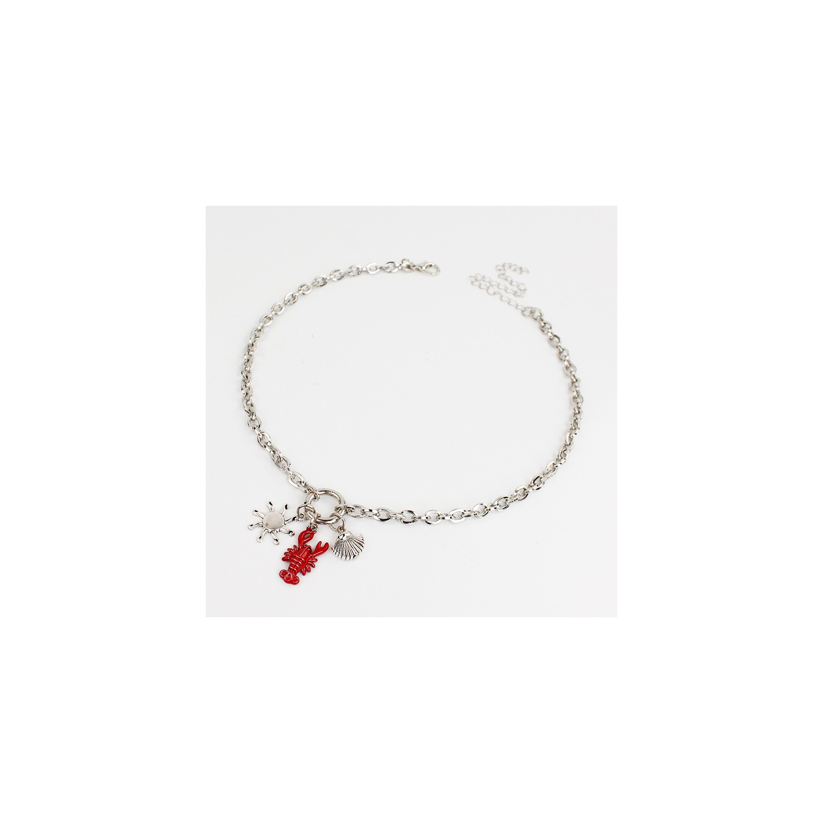 Collar de cadena diferenciada, con dijes exclusivos marinos, uno de ellos pintado a mano.