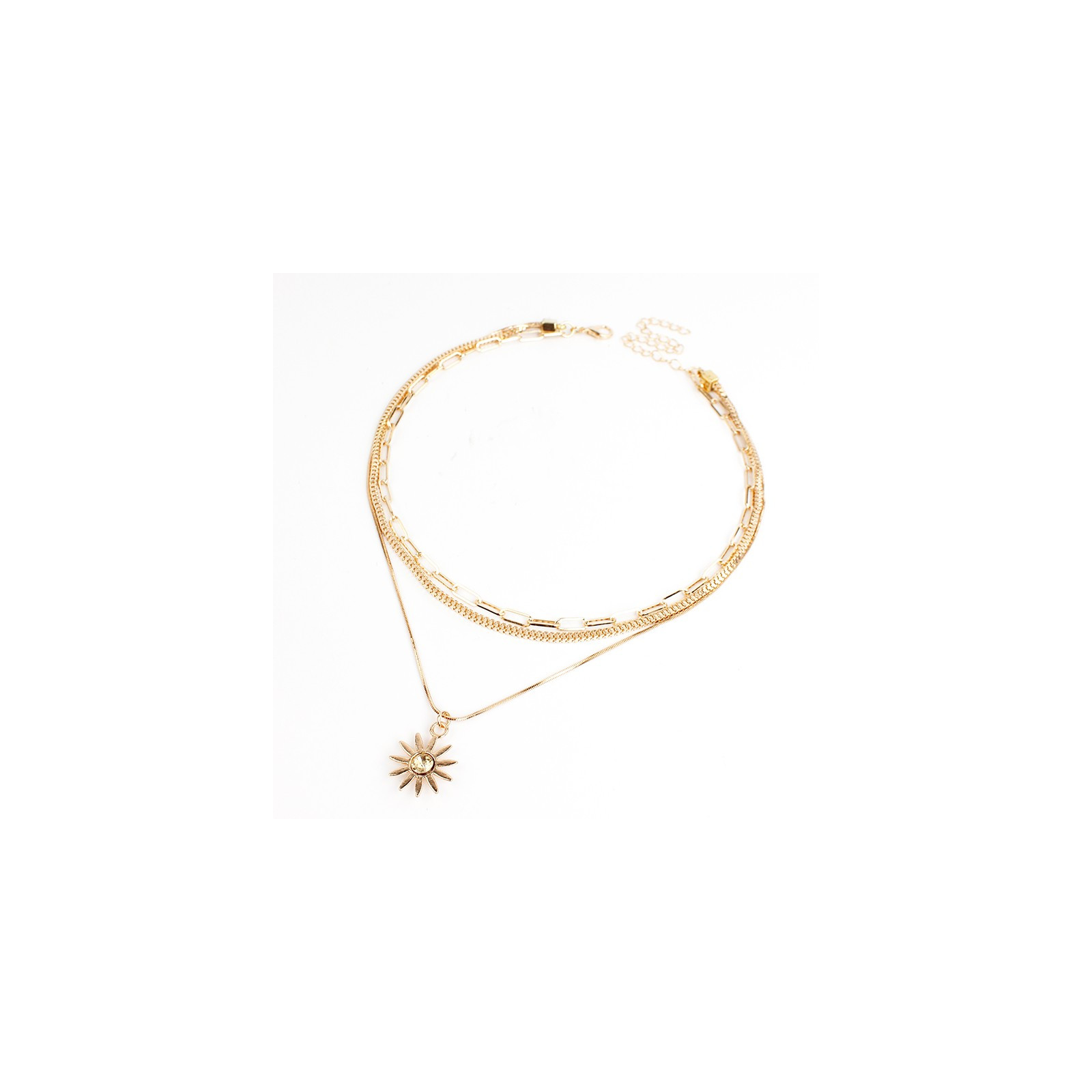 Collar de triple caída de cadenas diferenciadas. con dije exclusivo de fundición con forma de sol.